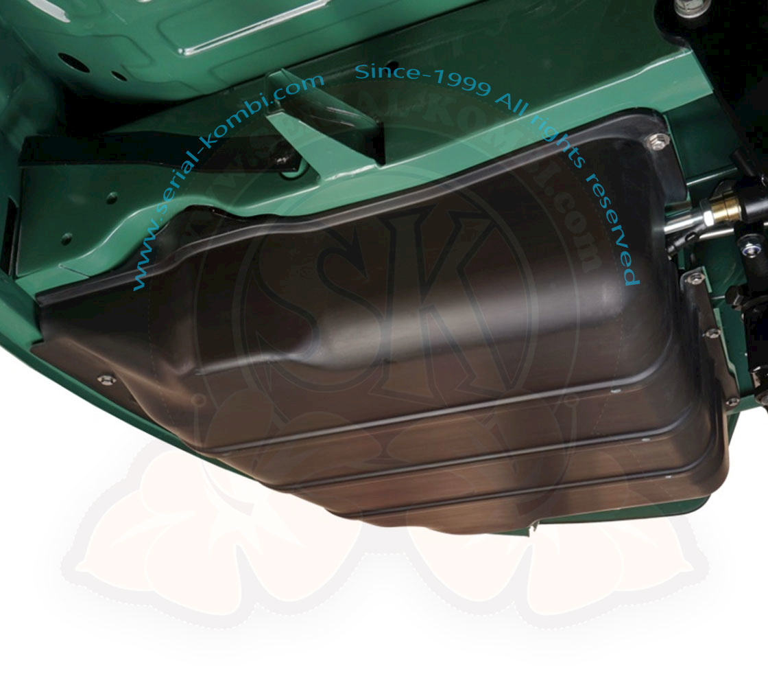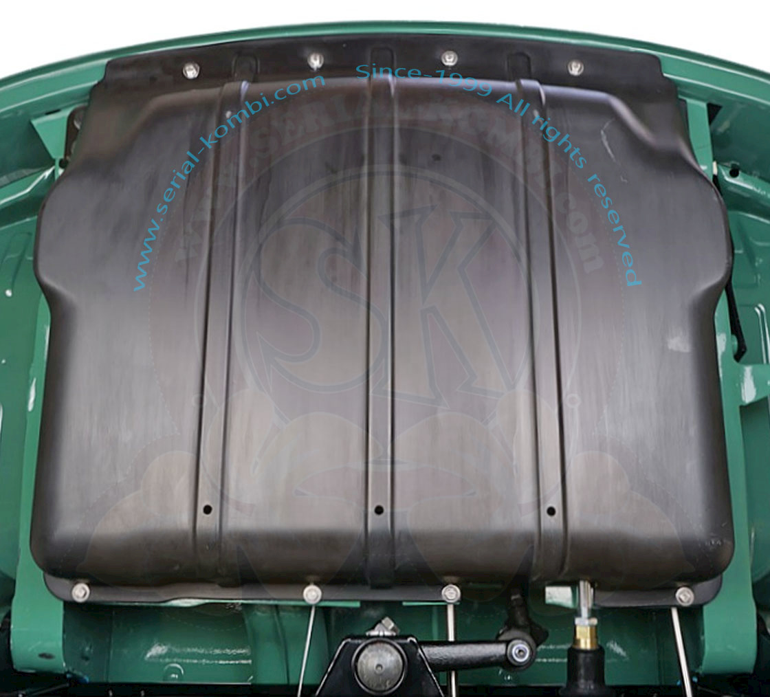 Diese aus GFK mit schwarzer Gelcoat Beschichtung gefertigte Abdeckung schützt die Zahnstangen Lenkung und die Mechanik der Pedalerie vor Beschädigungen, Schmutz und Feuchtigkeit.