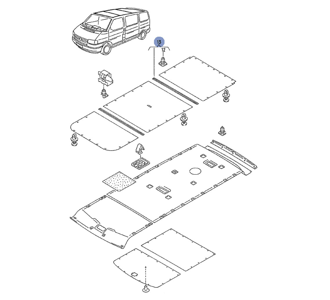 Abdeckleiste für Dachverkleidung mit Befestigungsclips, T4 9/1990-6/2003 kieselgrau (1YX)