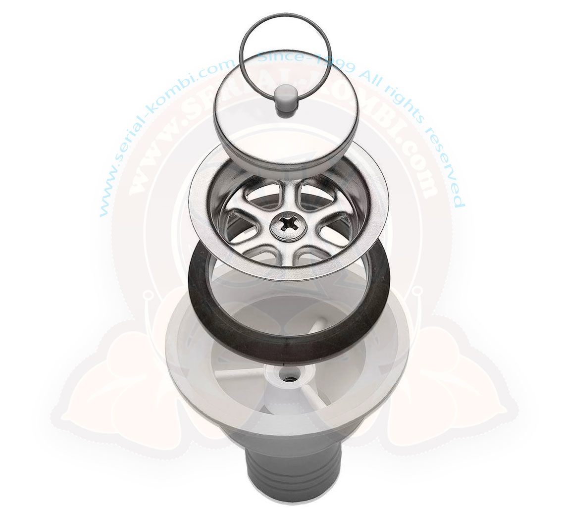 Ablauf für Spüle gerade, mit Siphon und Edelstahl Stöpsel, Gewinde Ø 37mm, Schlauch Ø 25mm, für Spülbecken mit 43mm Ablauf