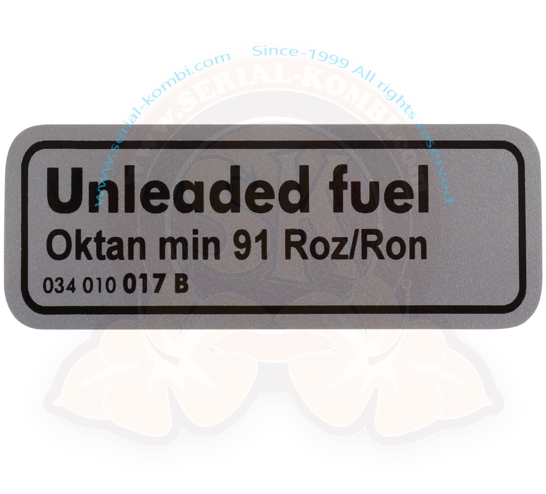 Aufkleber ‚Unleaded fuel Oktan min 91 Roz/Ron‘, 5/1979-7/1992 Benzin