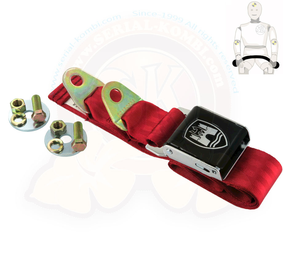 Beckengurt, Sicherheitsgurt, rot, Flugzeugschnalle schwarz, Wolfsburg Logo