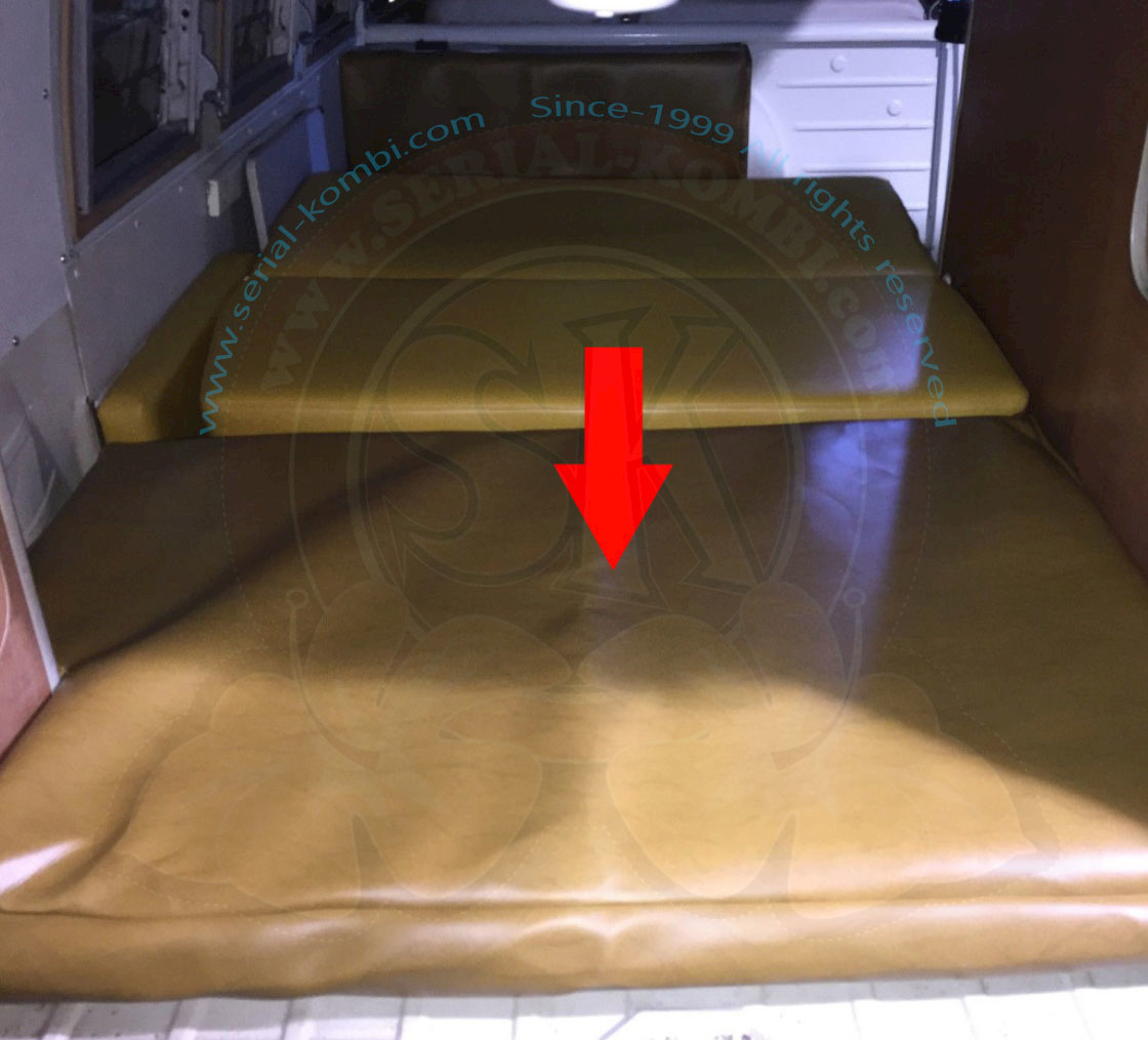 Bezug für Matratze auf Motorraum, für Fzge ohne Mitteldurchgang mit Schrank hinten links, Vinyl senfgelb, Westfalia, 8/1964-7/1967