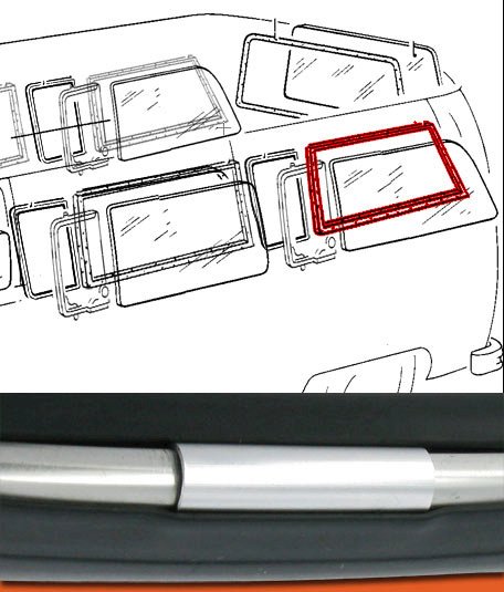 Dichtung für 3/4 Seitenfenster, Deluxe mit Nut für Zierleiste, links oder rechts, 8/1967-7/1979