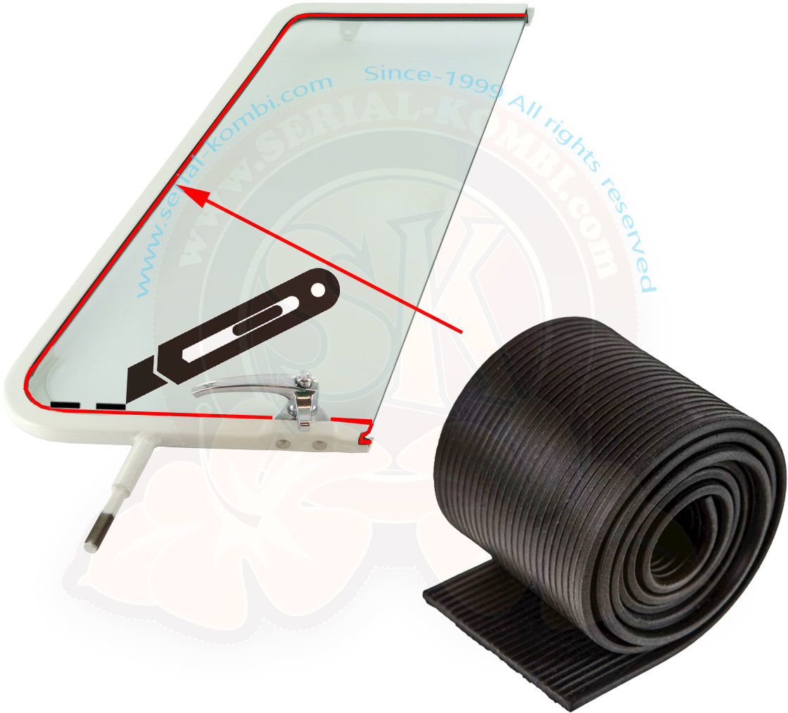 Dichtung für Ausstellfenster, zw. Glas und Rahmen, nach Installation zuschneiden, 68×4.5cm 8/1967-7/1979