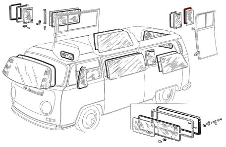Dichtung für feststehendes Seitenscheibe DoKa, 8/1967-7/1974 mit Ausstellfenster hinten