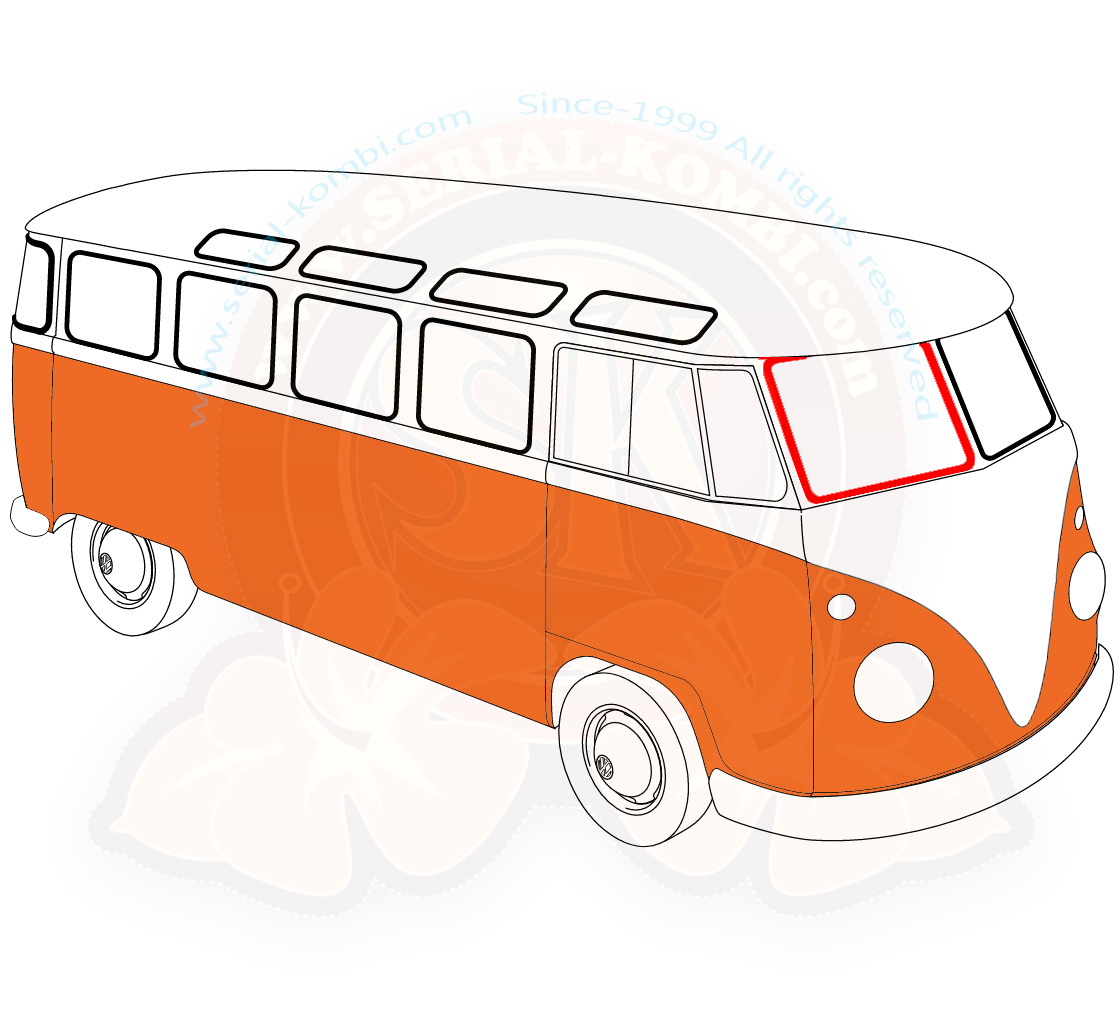 Dichtung für Frontscheibe, rechts, mit vorgeformten Ecken, 3/1955-7/1967