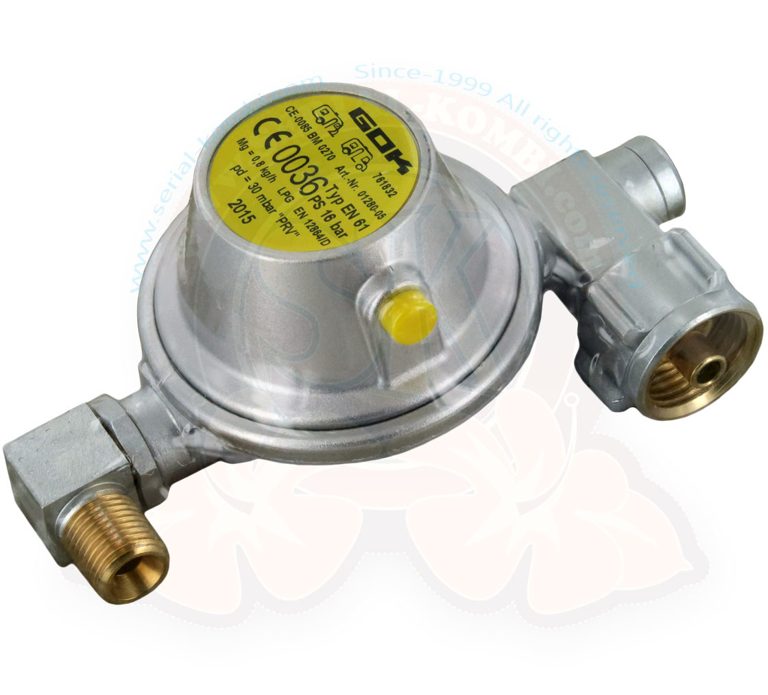 Gasdruckregler, 30mbar 800g/h Schraubanschluß, PS 16 bar, Type EN61, T5 4/2003-2015 California