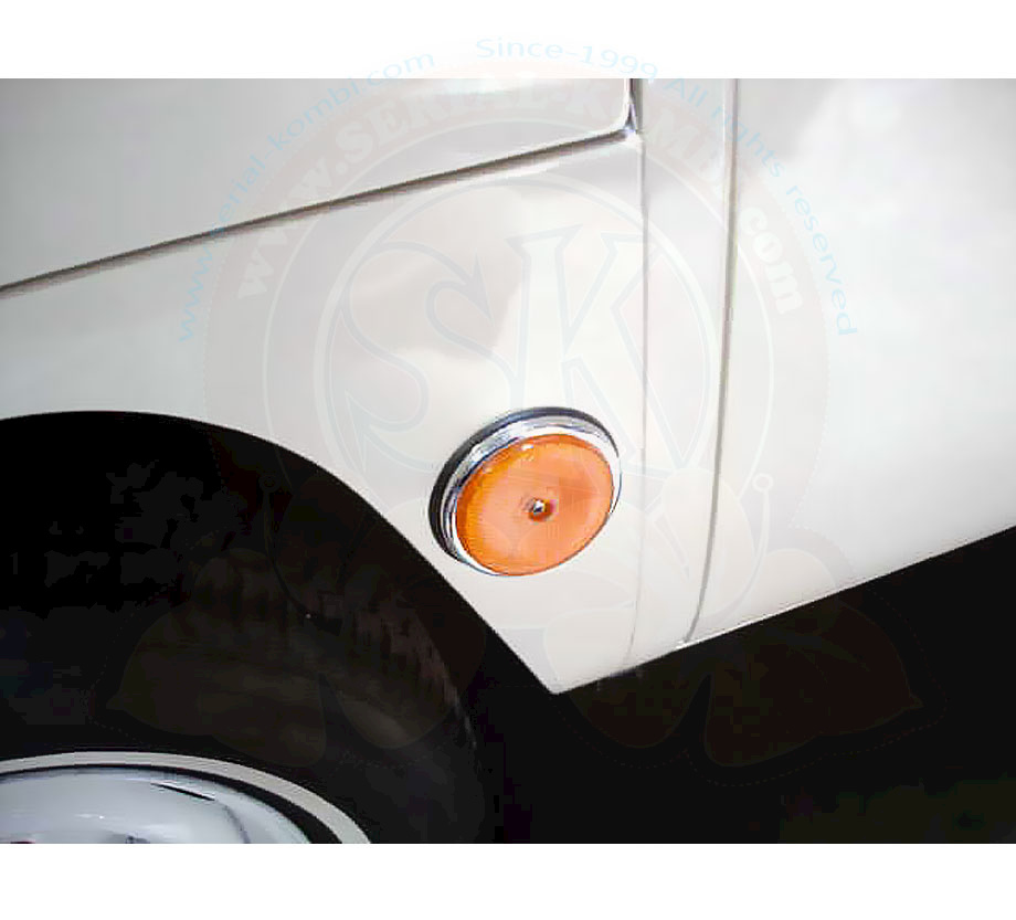 Glas für Seitenbegrenzungsleuchte vorne, orange mit silbernem Rand, inkl. Dichtung, US Modell, 8/1967-7/1969