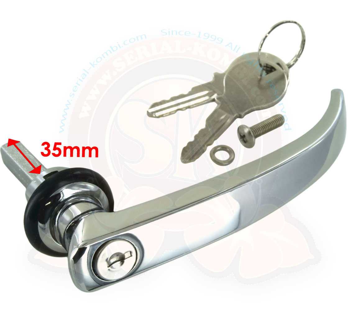 Griff für Laderaumtür außen, verchromt, langer Vierkant für Innengriff, 8/1958-7/1967 inkl. Rosette Dichtung und 2 Schlüsseln