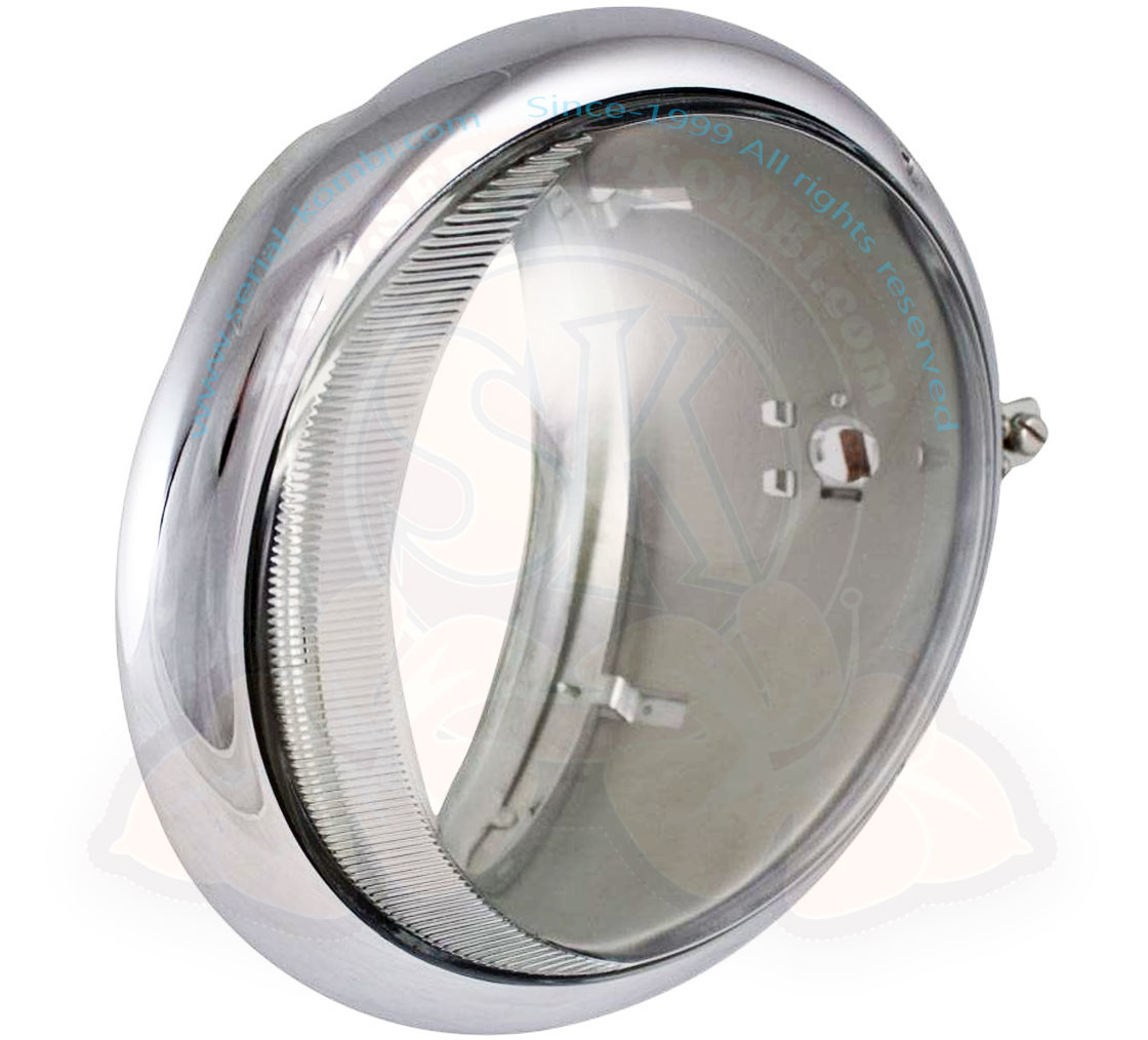 US-Scheinwerfergehäuse (11998037), mit glattem Glas, Standlichthalterung, Befestigungsschrauben und Unterlegscheiben, Clips und linker Halterung (WW Art.-Nr.: 211998164) für „sealed beam“ Leuchtmittel.