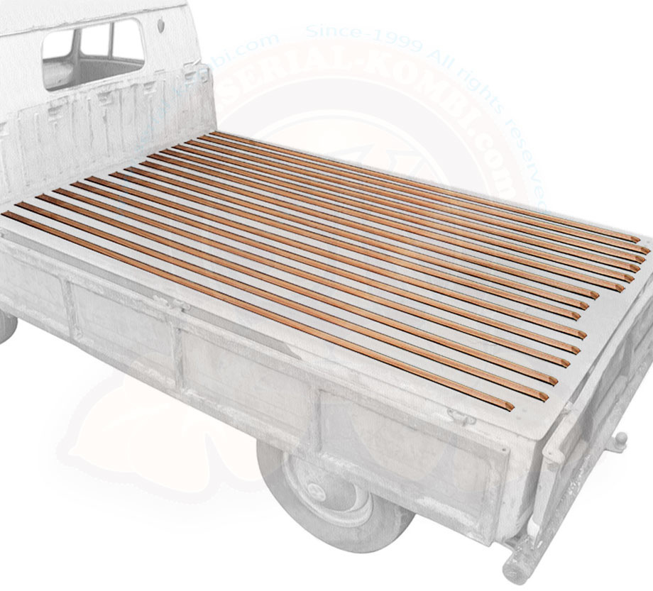 Kompletter Satz mit allen Holzlatten, die für das Bett eines Pick-ups mit Einzelkabine benötigt werden.