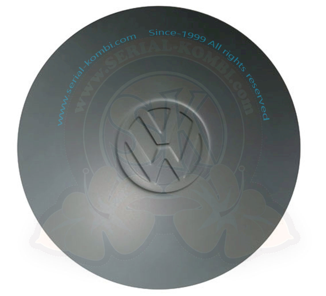 Radkappe mit VW Logo, pulverbeschichtet hellgrau L345, Käfer / Karmann Ghia -7/1965, Typ 181 (einzeln)