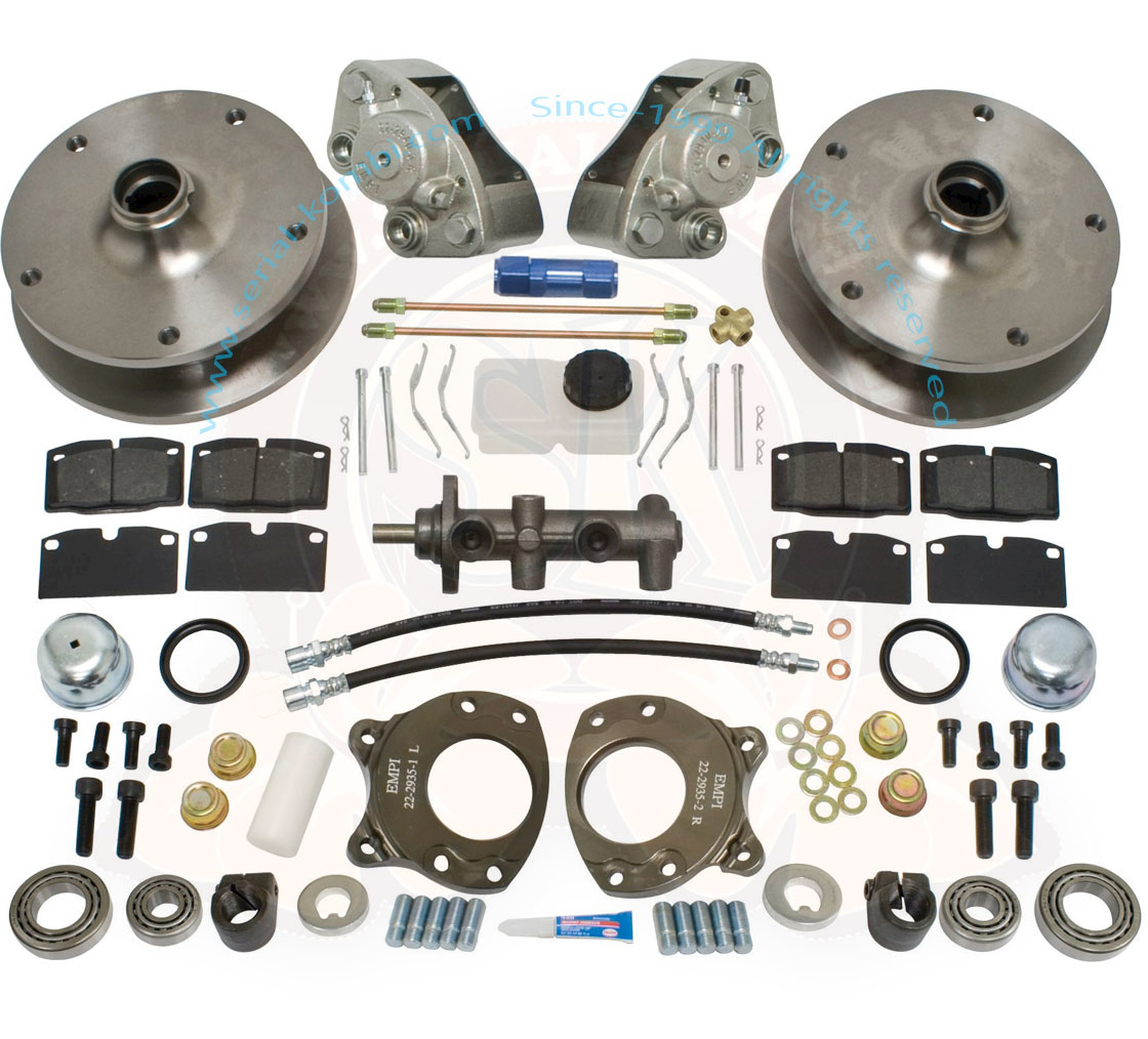 Der EMPI Typ 2 Scheibenbremsen-Umrüstsatz passt auf original 14″ VW Bus Stahlfelgen und die meisten 15″ (und größer) Zubehörfelgen.