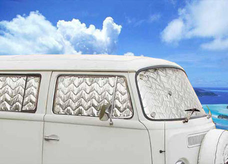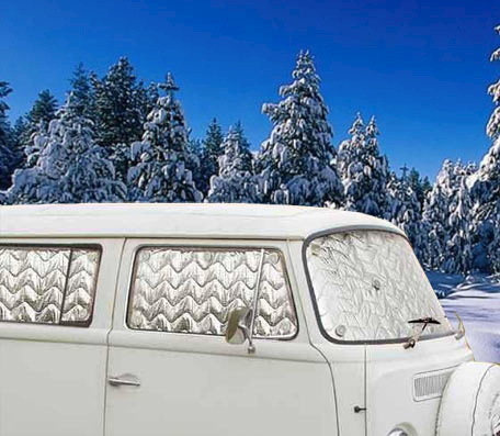 Im Winter hält die Isolierung die Wärme im Fahrzeuginneren und im Sommer reflektiert sie die durch aufprallende Sonne entstehende Wärme. Außerdem wird der Innenraum dadurch verdunkelt und die Sicht auf den Innenraum wird versperrt wodurch Ihnen mehr Privatsphäre, nicht nur während der Nacht, zuteil wird.