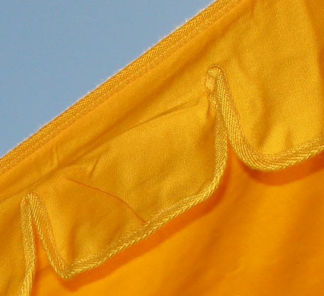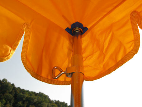 Sonnensegel gelb/orange, 3 höhenverstellbare Stangen, Montage mit Kunststoffschiene zum einklippen in die Regenrinne