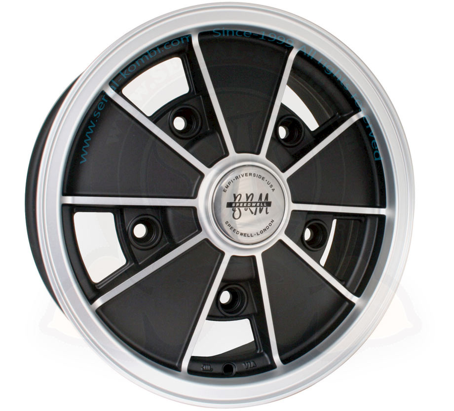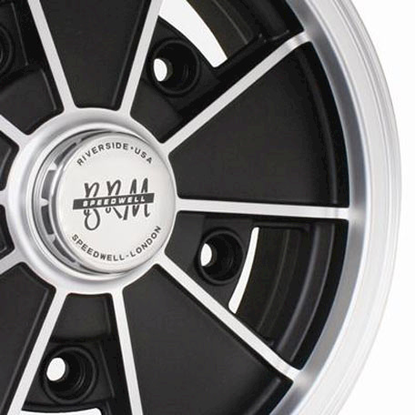 Eine schöne Reproduktion BRM Felge von SSP. Schwarz matt lackiert, poliertes Aluminium