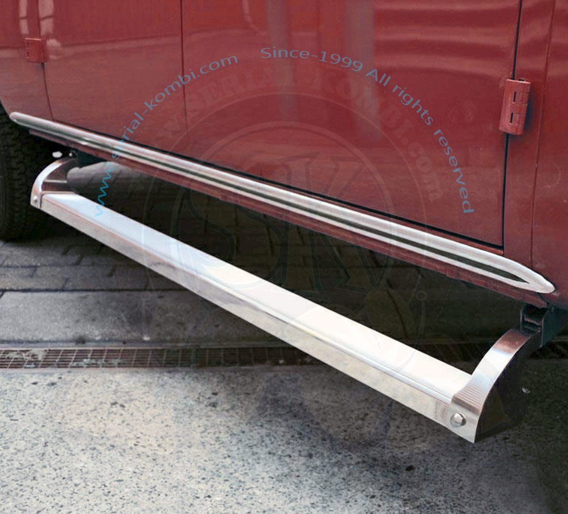 Trittstufe aus poliertem Aluminium für Bus 1950-1979. Wird an den Wagenheberufnahmen befestigt.Ideal für alte Leute mit höher gelegtem Bus