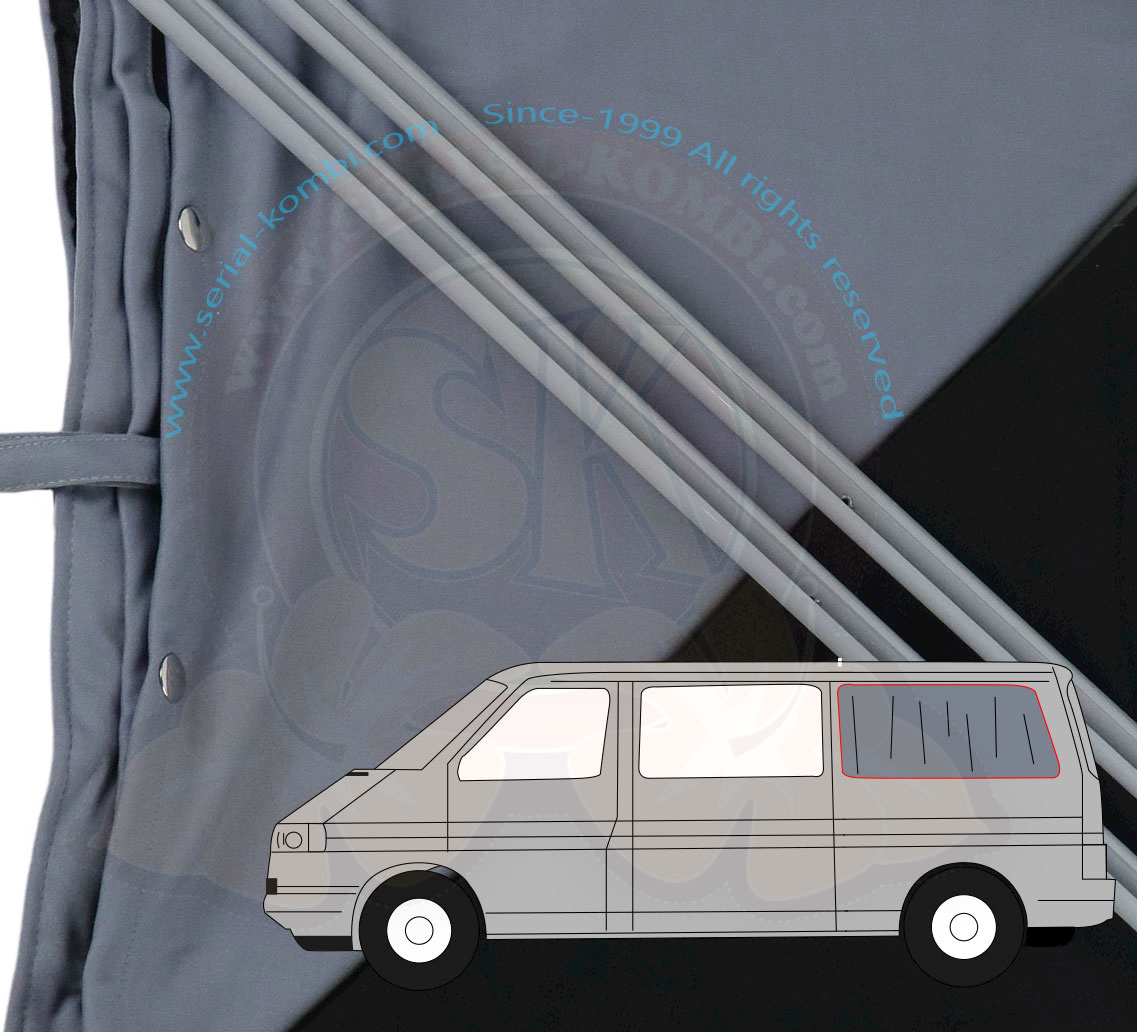 Vorhang hinten links oder rechts, mit vorgeformter Schiene, grau, T4 9/1990-6/2003 (für langen Radstand)