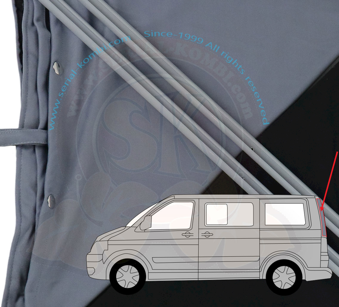Vorhänge Heckklappe, mit vorgeformter Schiene, grau, T5 4/2003-8/2015 (paarweise)