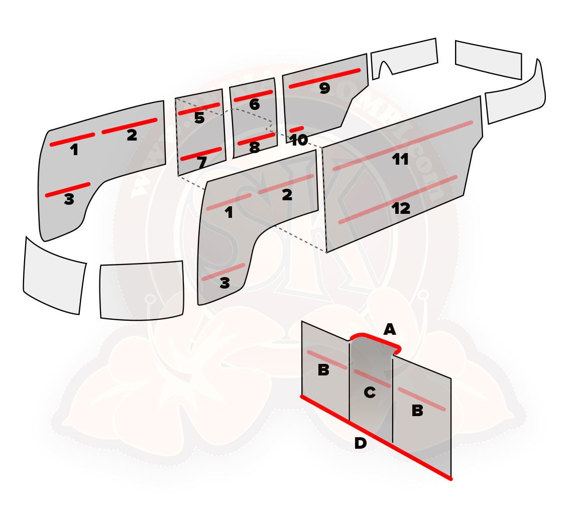 Beinhaltet alle Türzierleisten, Trennwandzierleisten, Seitenverkleidungszierleisten,