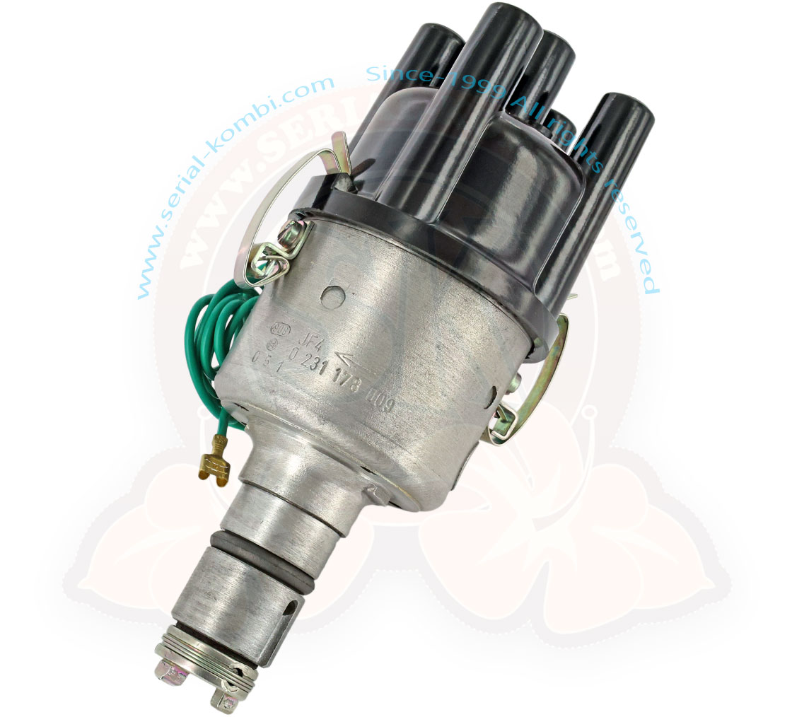 This reconditioned distributor has been carefully dismantled, cleaned, checked, and fitted with new Bosch or Beru parts depending on availability: head, finger (rotor), contact points, capacitor, and base gasket.