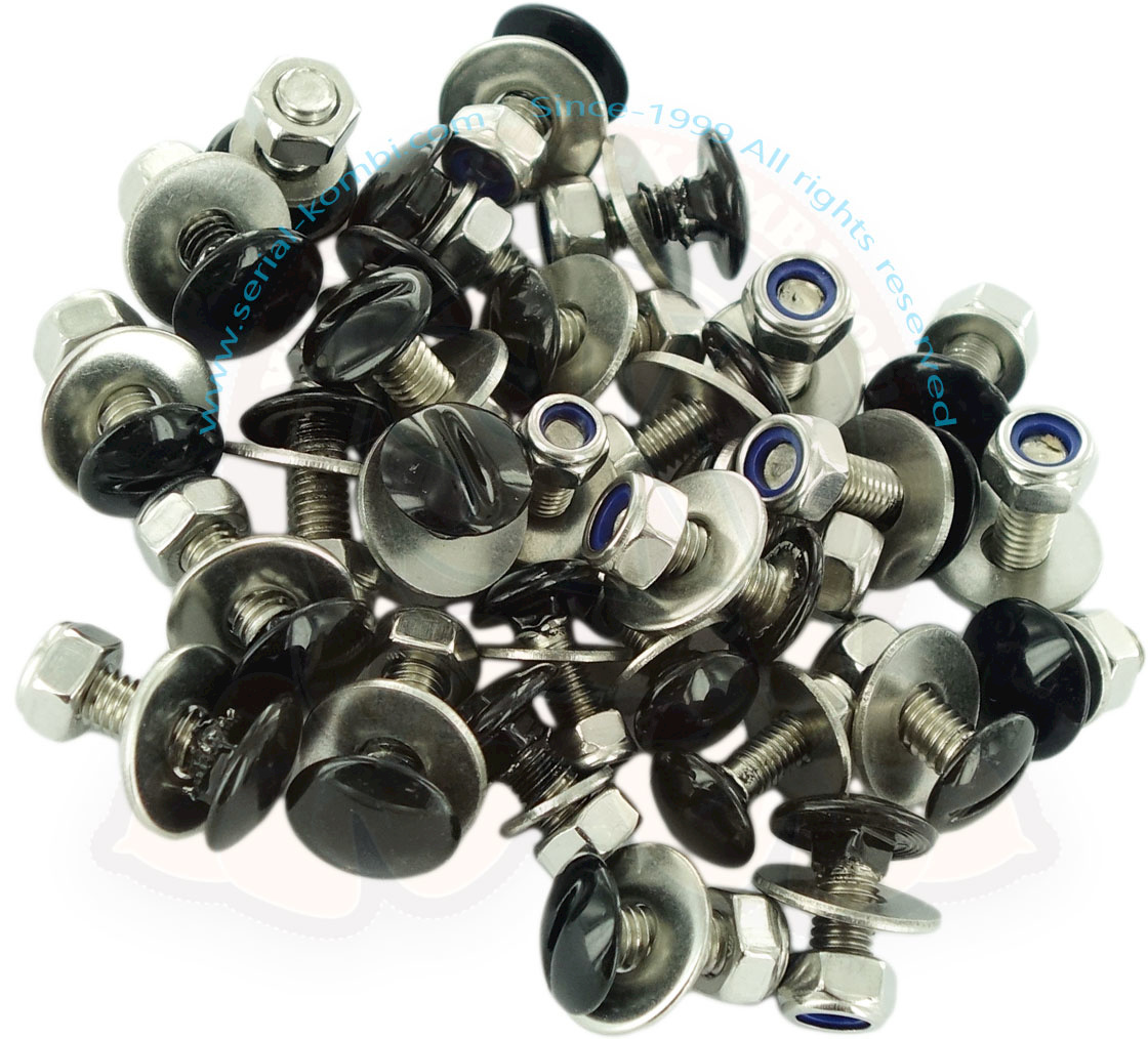 The kit includes a set of black stainless steel screws for the pop-up roof and luggage compartment of the VW T3 / T25 Westfalia.