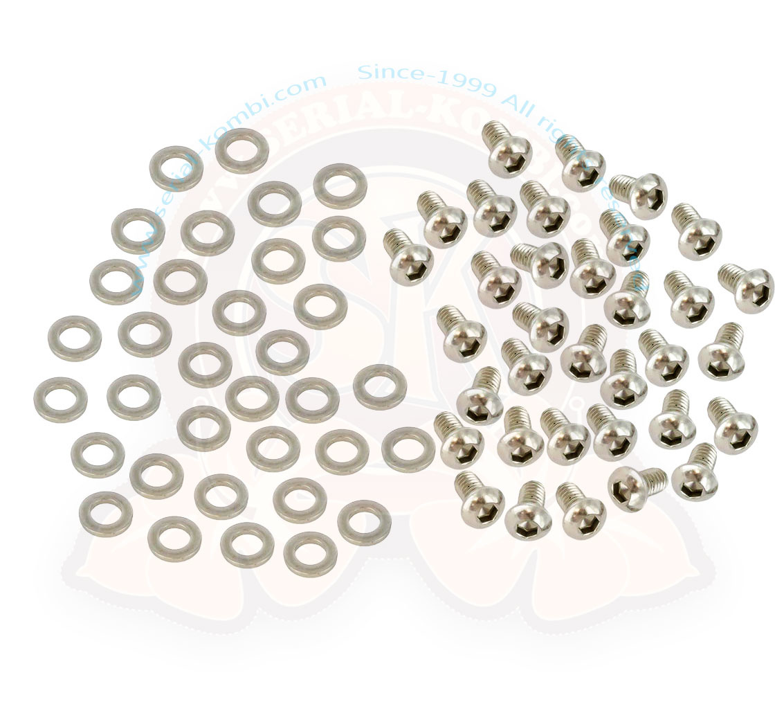 M6x10 Super trick, stainless steel screws and washers, for use with an Allen key (supplied).
