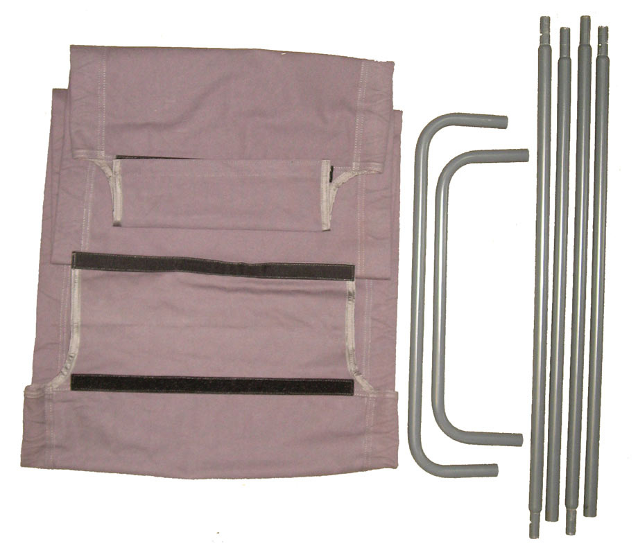 The steel poles work on an insert and click system so that the frame is very strong but can be packed down to very small size (78cm x 22cm x 8cm).