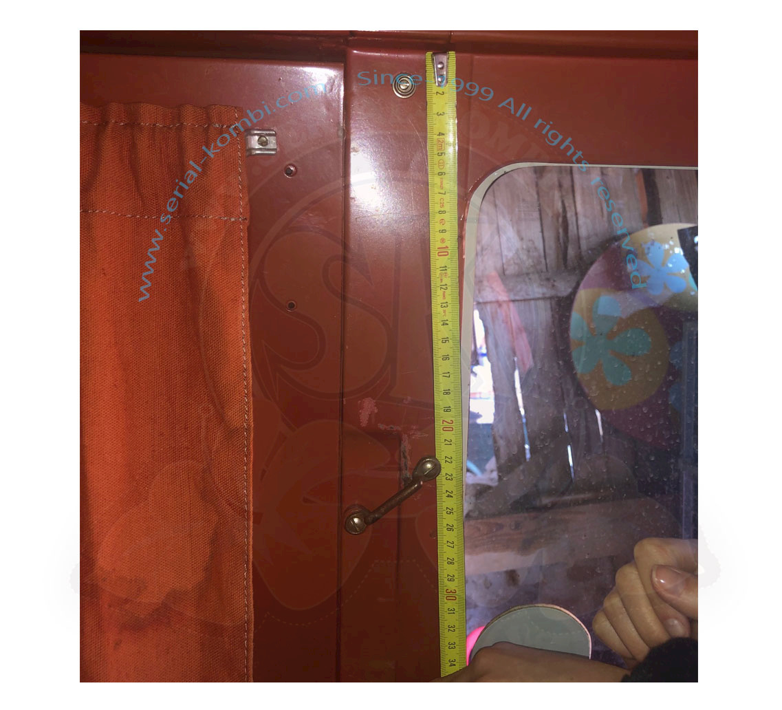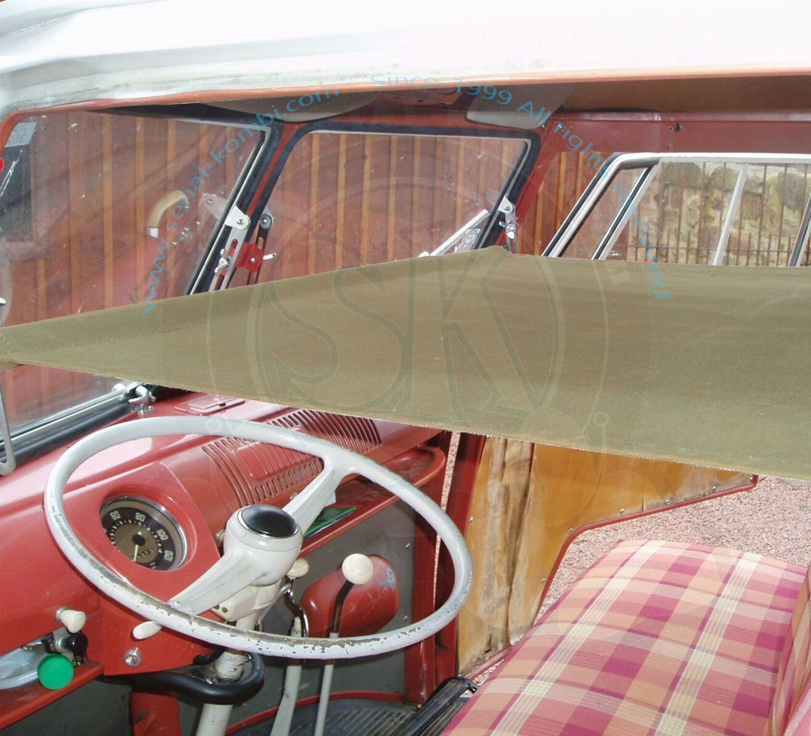 Child bunk for VW Split Window cab made of hard-wearing cotton canvas. Attached via hooks on A and B pillars.