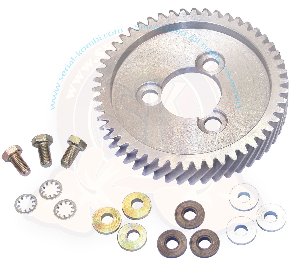 Each kit comes complete with a selection of degree discs, enabling you to advance or retard your cam timing from minus 4 degrees to plus 4 degrees. The adjustable helical cut cam gear is compatible with all 1961 and later Type-1, 2, & 3 cams running a 3-bolt gear. Crafted from high-quality aluminium, the gear is precision machined for durability and performance. Additionally, the kit includes lock washers and SAE Grade 8 bolts, ensuring a secure and reliable installation.