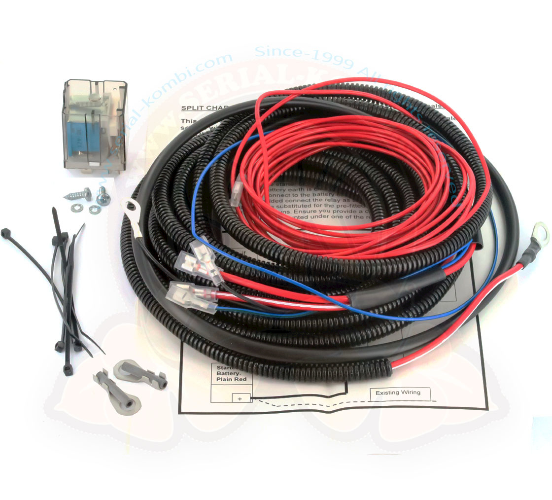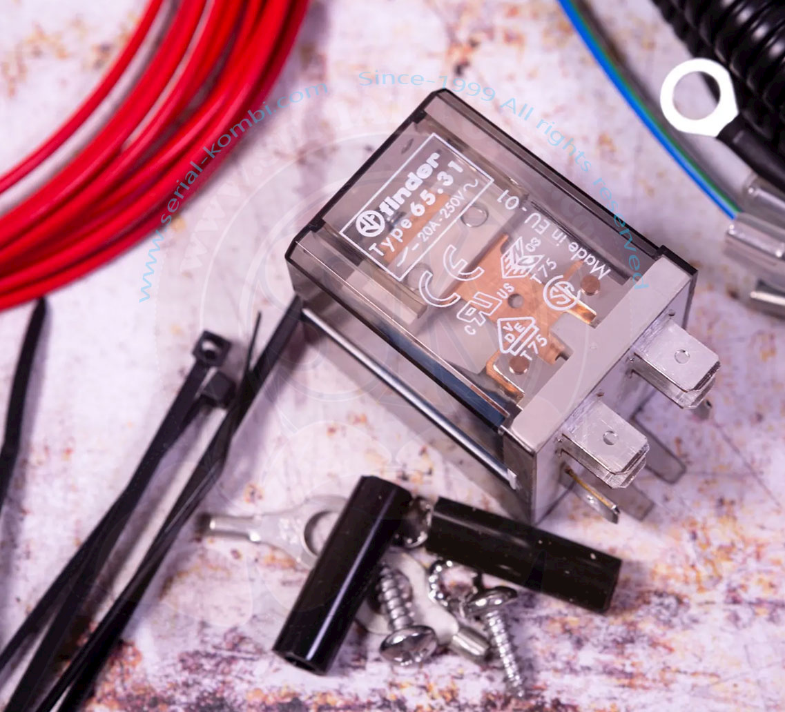 Charging relay 20A for second 12V battery, complete wiring kit, 2/1950-7/1967