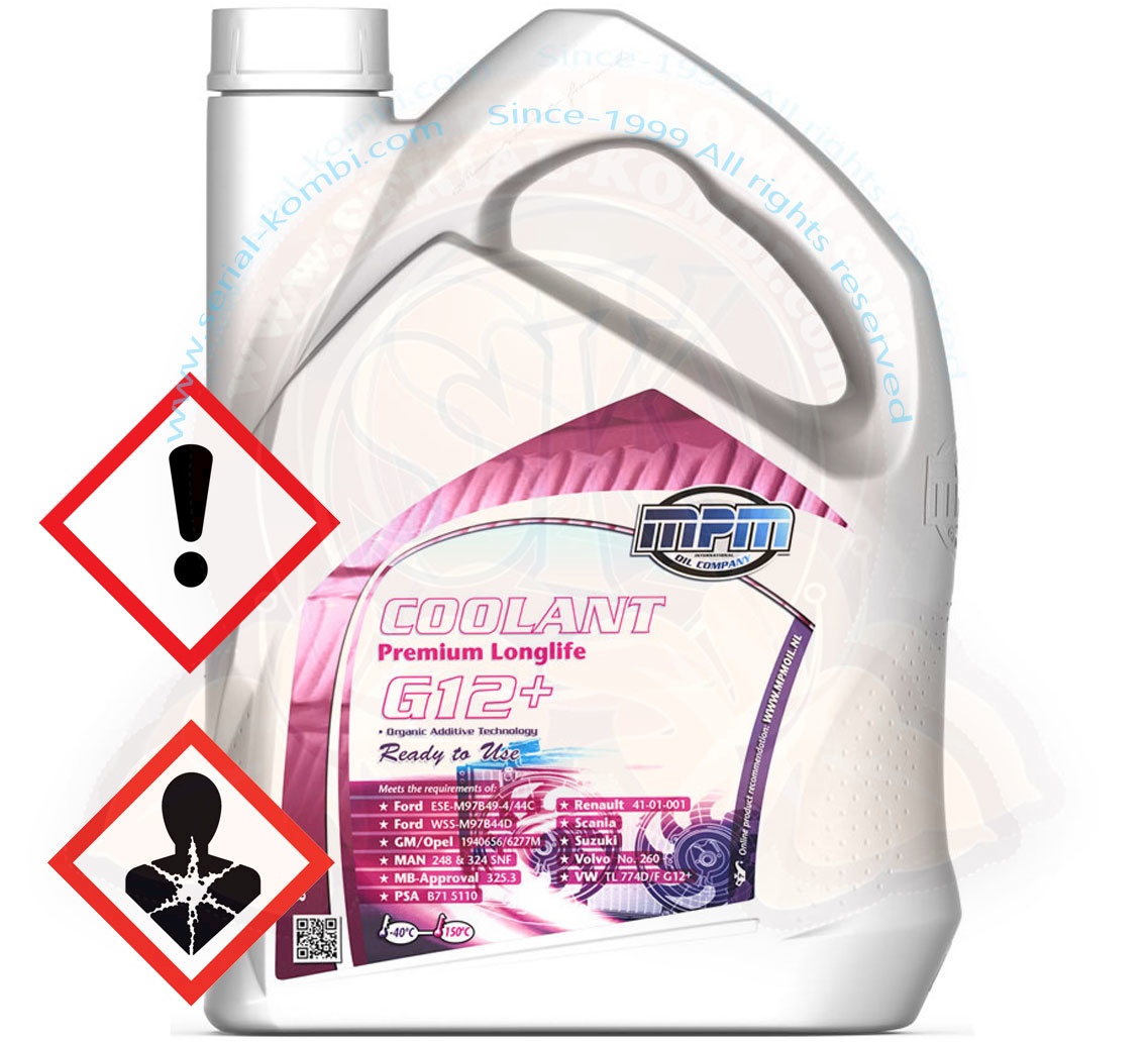 All Transporter and T4 VW on 1980-2003, approximately 13 litres in one to Transporter and 15 litres in T4. This standard coolant can be used throughout the whole year in the cooling systems of petrol and diesel engines. This coolant should be diluted before use and protects against freezing down to -40 ºC. Specification VW TL 774D/F G12+