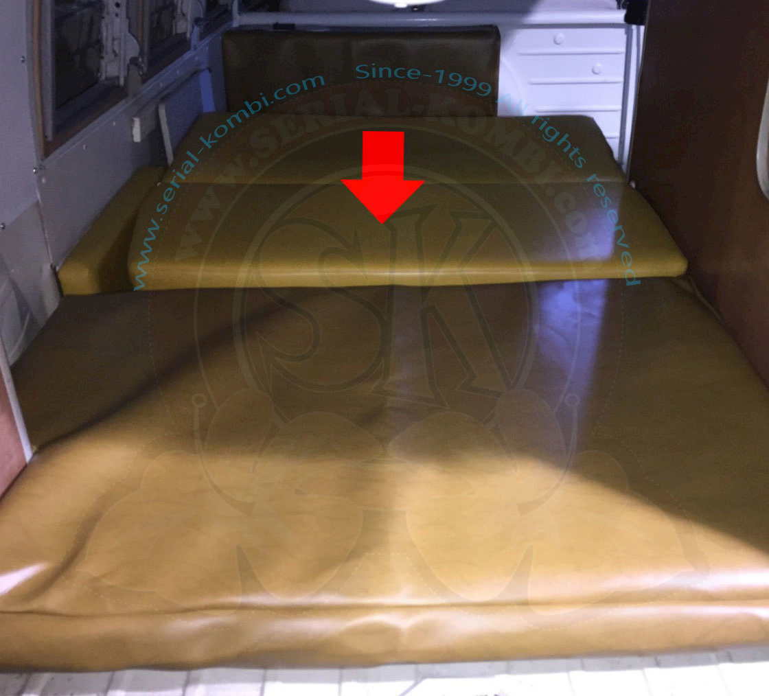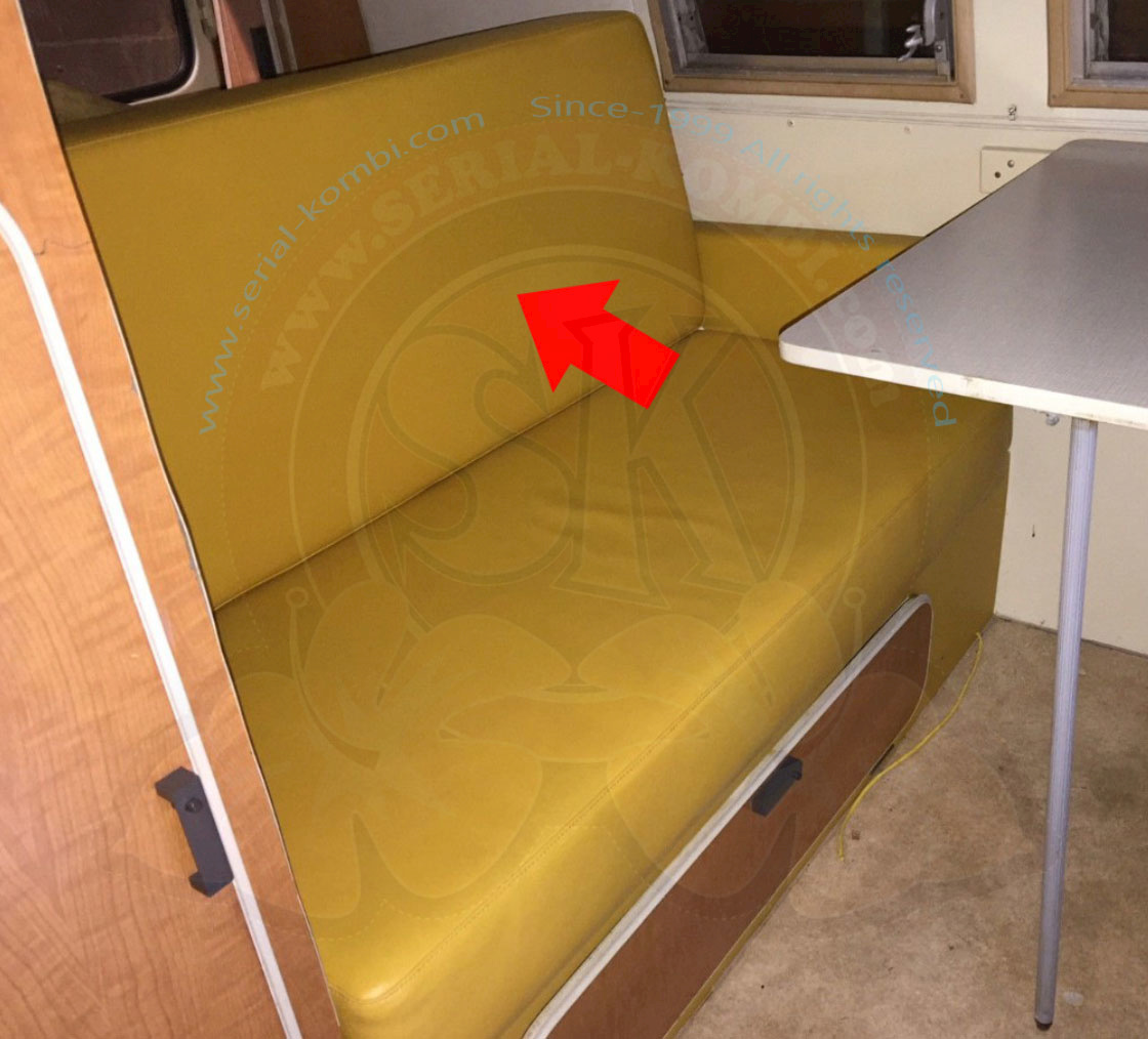 Cover for rock and roll bed back rest, mustard yellow vinyl, Westfalia, 8/1964-7/1967