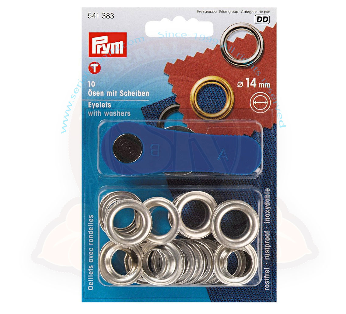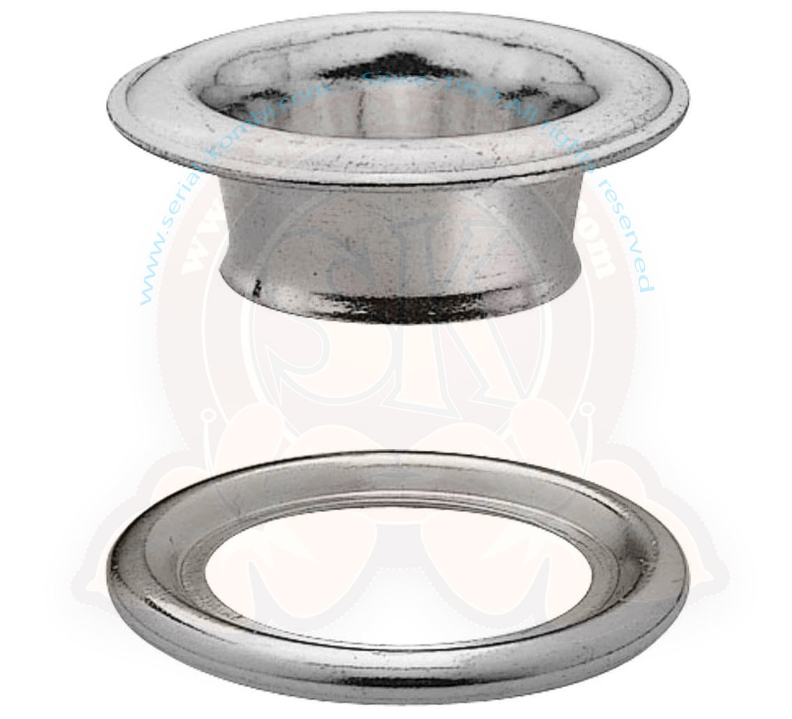 The tool is used to pierce the fabric on one side and to crush the eyelet on the other. Requires a hammer or mallet.