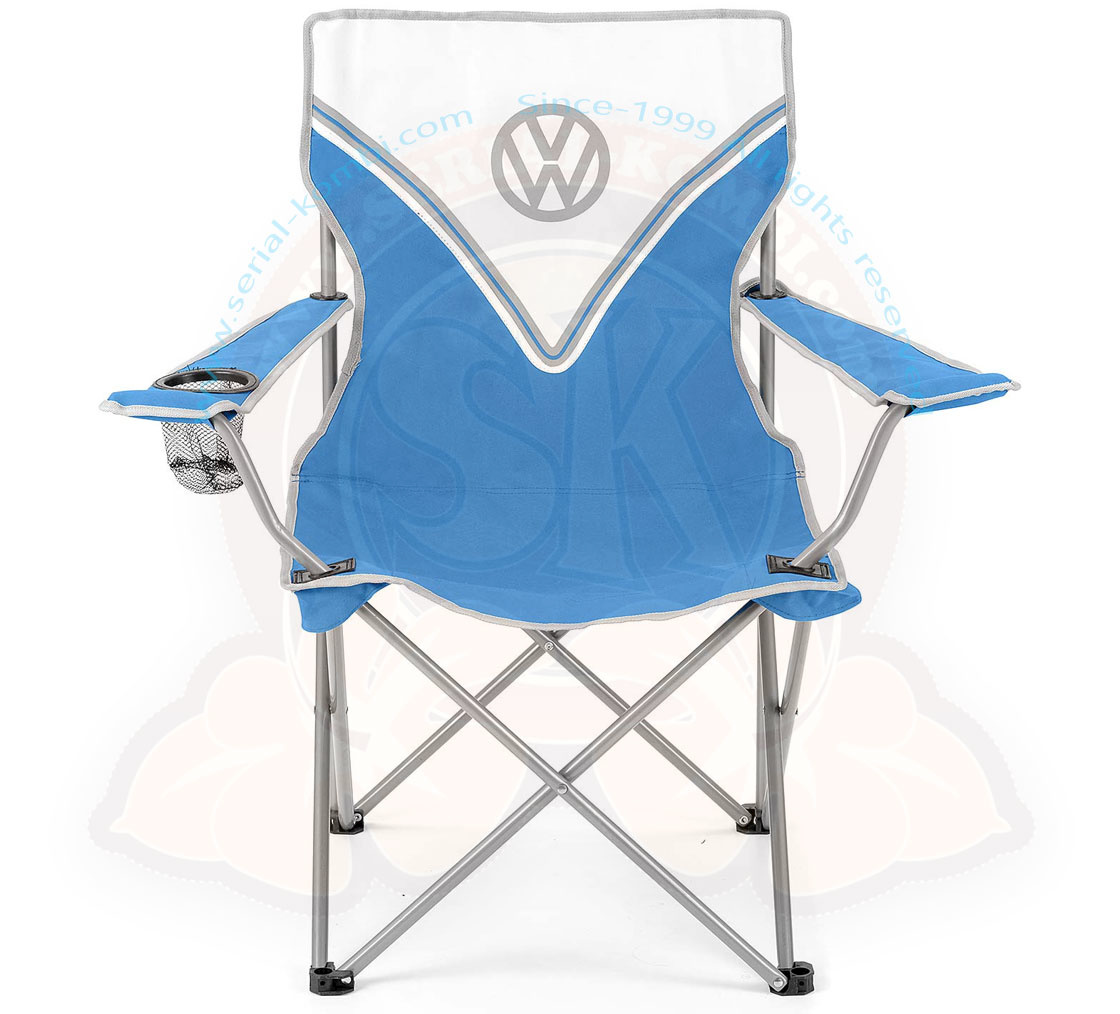 Folding chair, with armrests and cup holder, 100% polyester, 85x52x52cm, folded 85 x Ø 10cm “split bus” blue