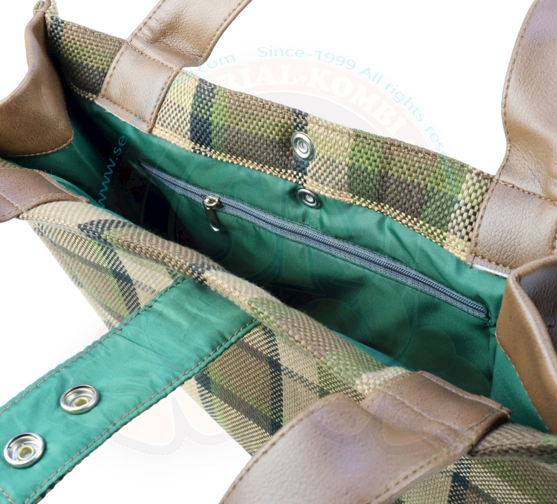 Handbag with inside zippered pocket, brown/beige Westfalia, width 34cm, height 25cm, depth 15cm, handles 22cm