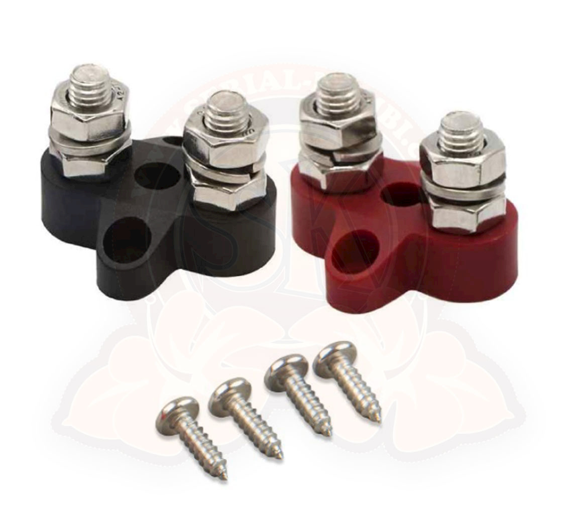 Designed to connect power lines, distribute power to separate locations and condense grounding cables to a central location. Up to 150 amps Stainless steel