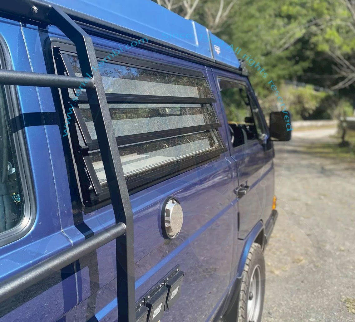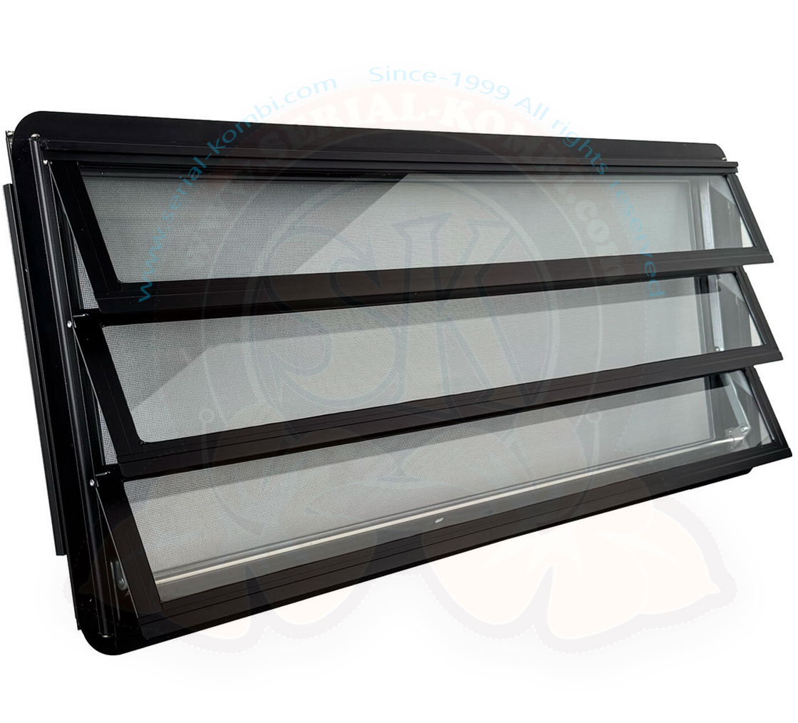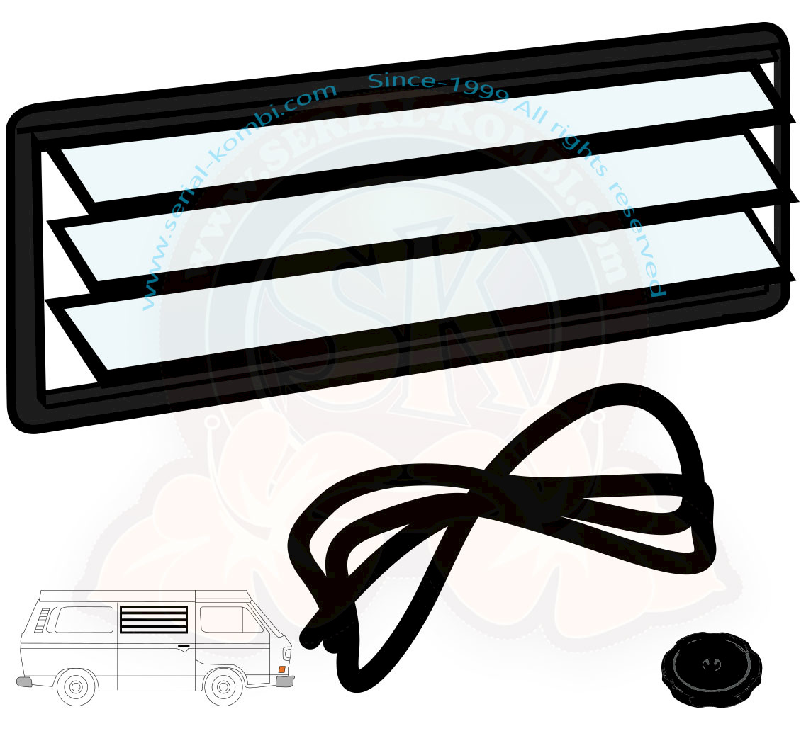 Jalousie louvered window kit, with seal, mosquito net and black knob, for right sliding door, 8/1984-7/1992