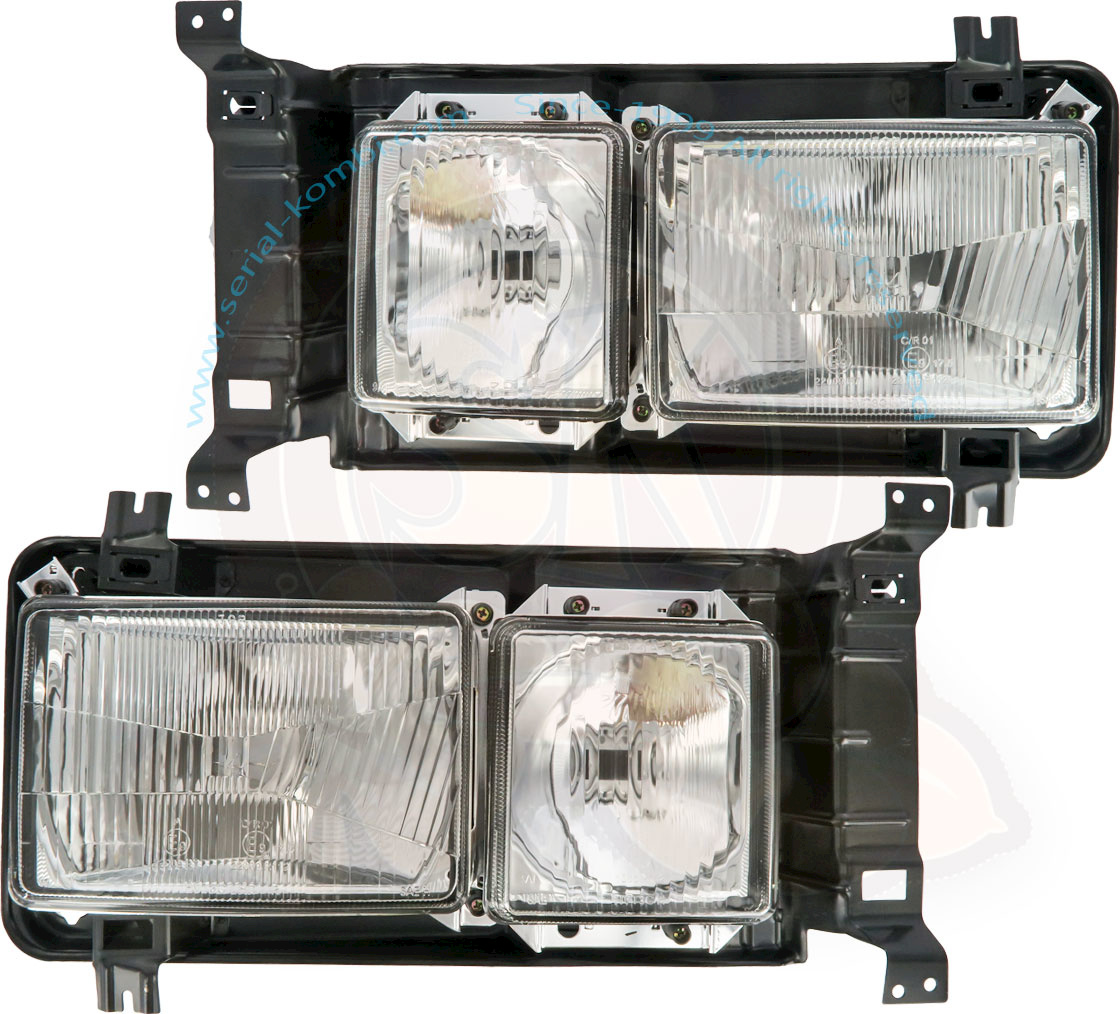 Rectangular headlights, inner and outer, one pair, complete with metal support 5/1979-7/1992