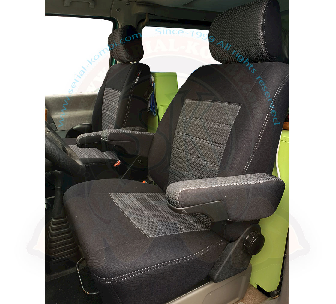 Seat cover set, driver and passenger seat, dark grey fabric, with 2 storage pockets on the backrest T4 9/1990-6/2003