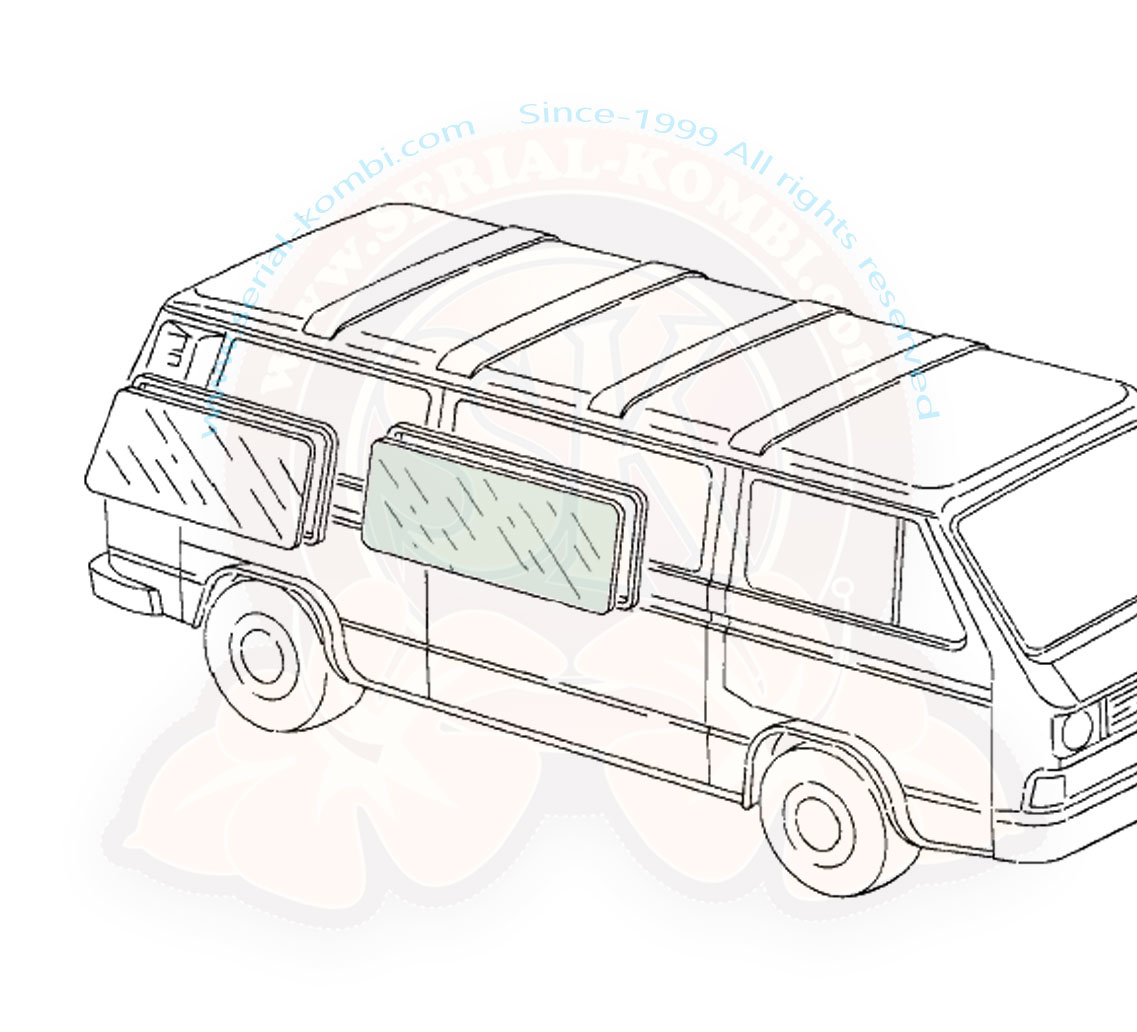 Side window middle left 5/1979-7/1992 or right 5/1979-8/1984, 428x1082mm green