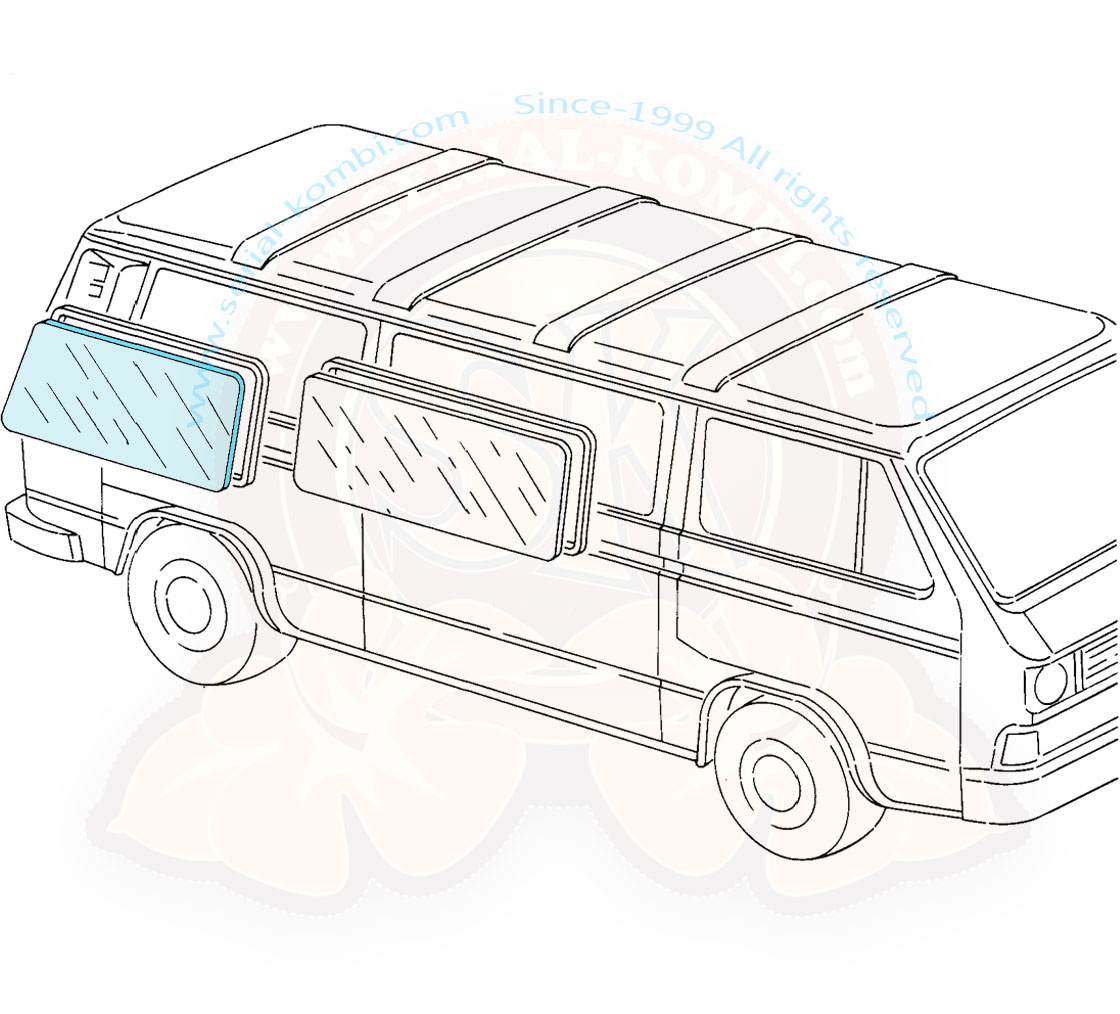 Side window, rear, left or right, 970x428mm, 5/1979-7/1992