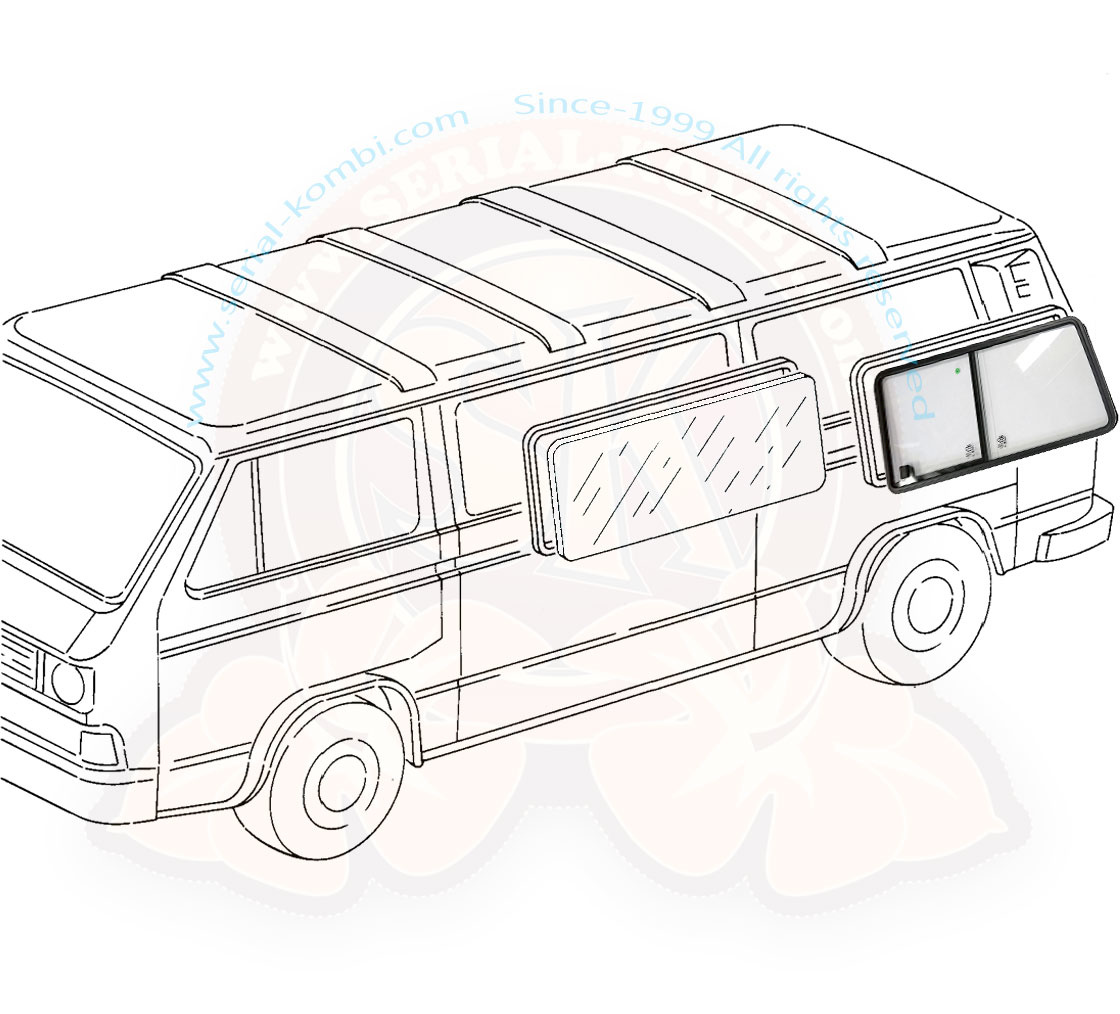 Sliding window rear left (delivered without seal 253845341 or 255845341), 5/1979-7/1992