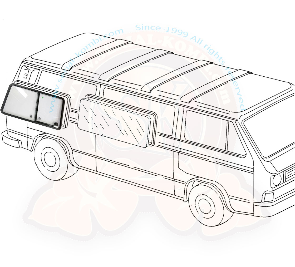 Sliding window, rear right, 5/1979-7/1992 (without seal 253845341 or 255845341)