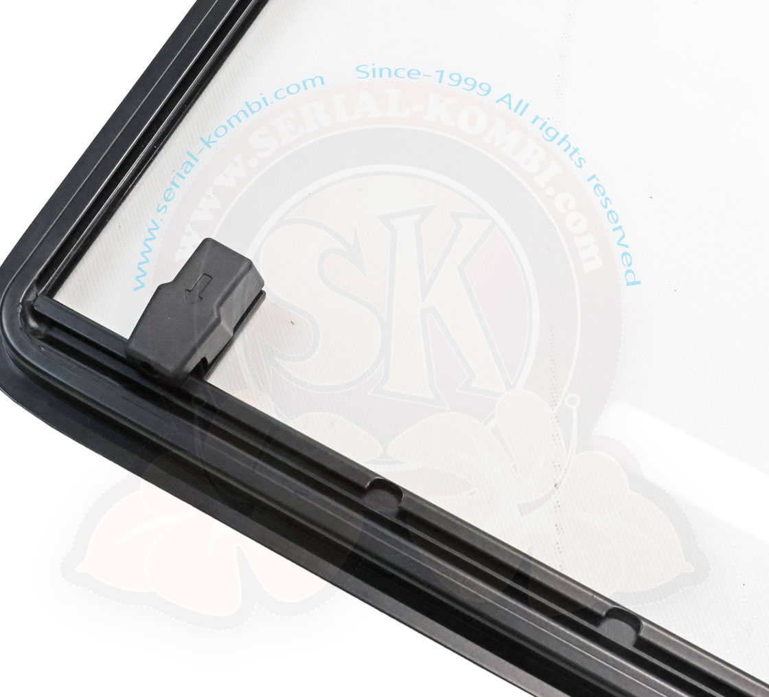 Sliding window rear right, handle at bottom like original, ABS plastic, 5/1979-7/1992
