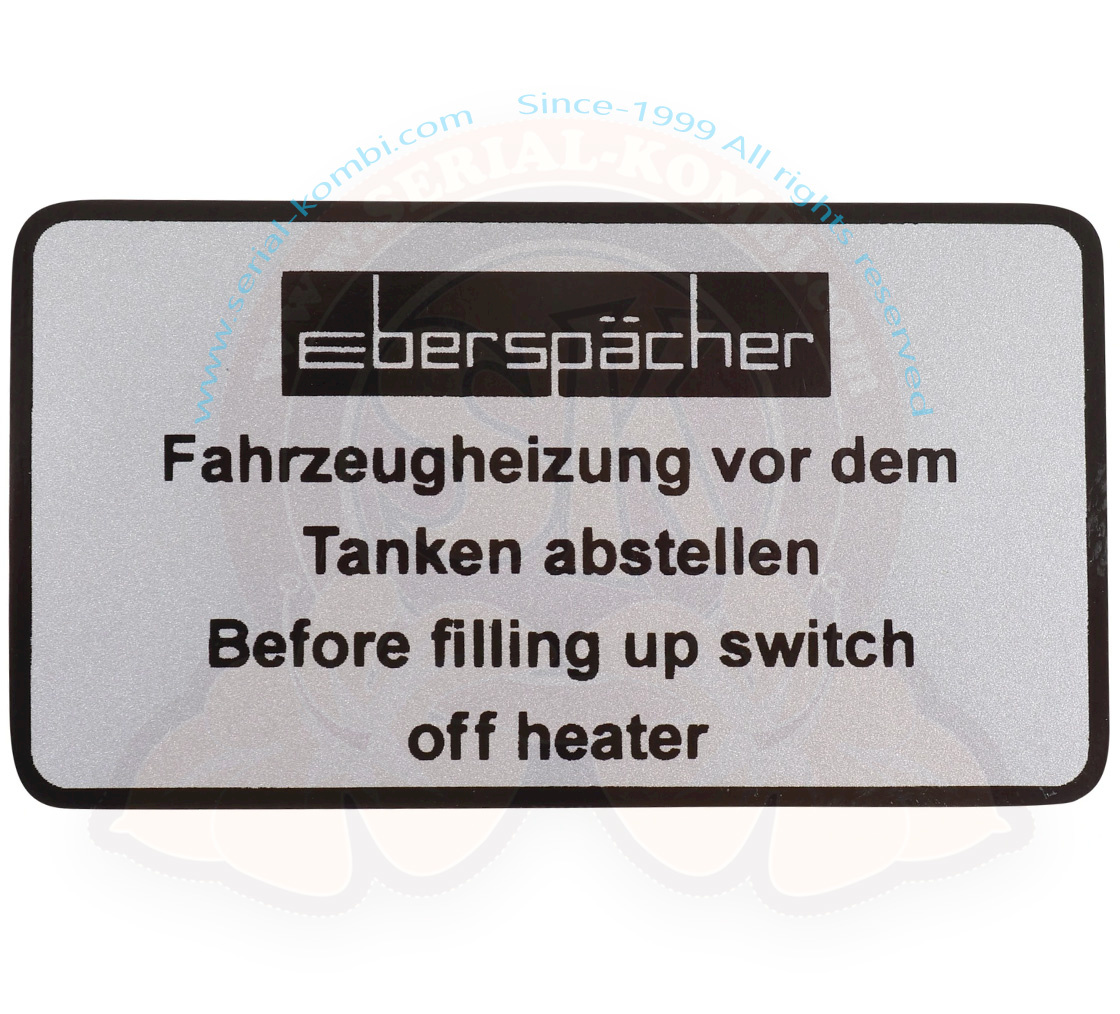 Sticker ‘Eberspächer – Before filling up switch off heater’, 5/1979-7/1992