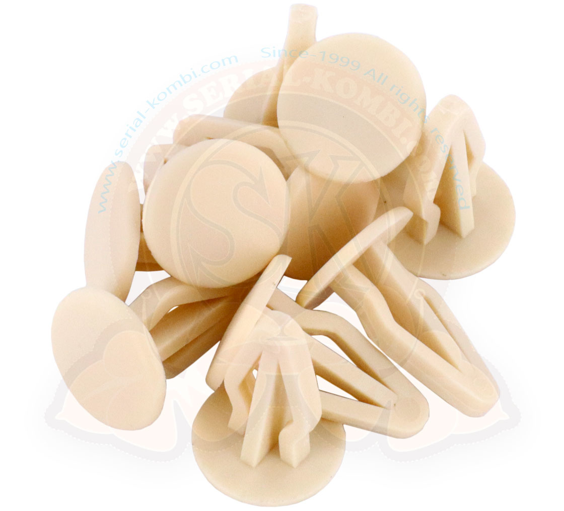 White (cream) trim clips (Push in) for sliding door or rear hatch panel, 10 pcs, 5/1979-7/1992
