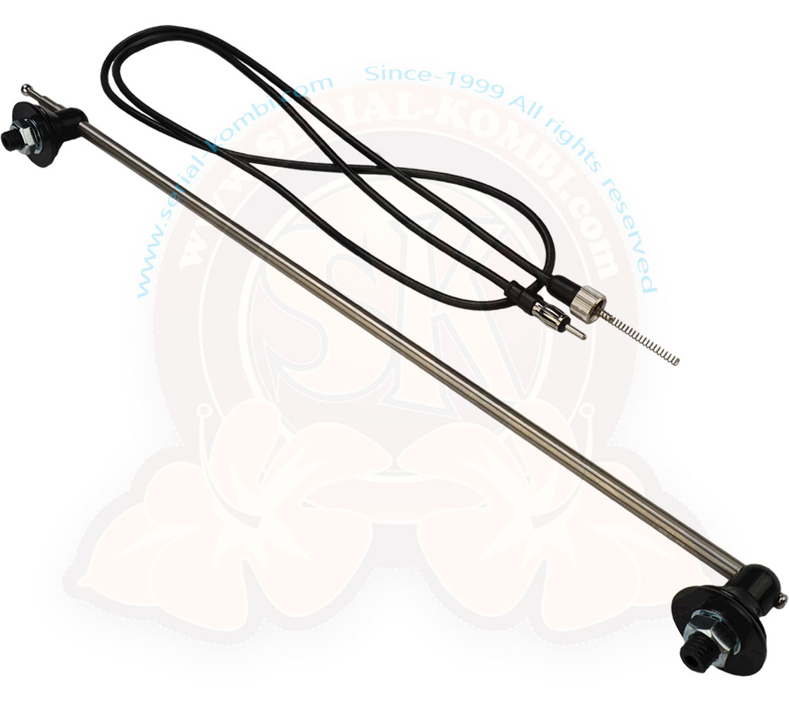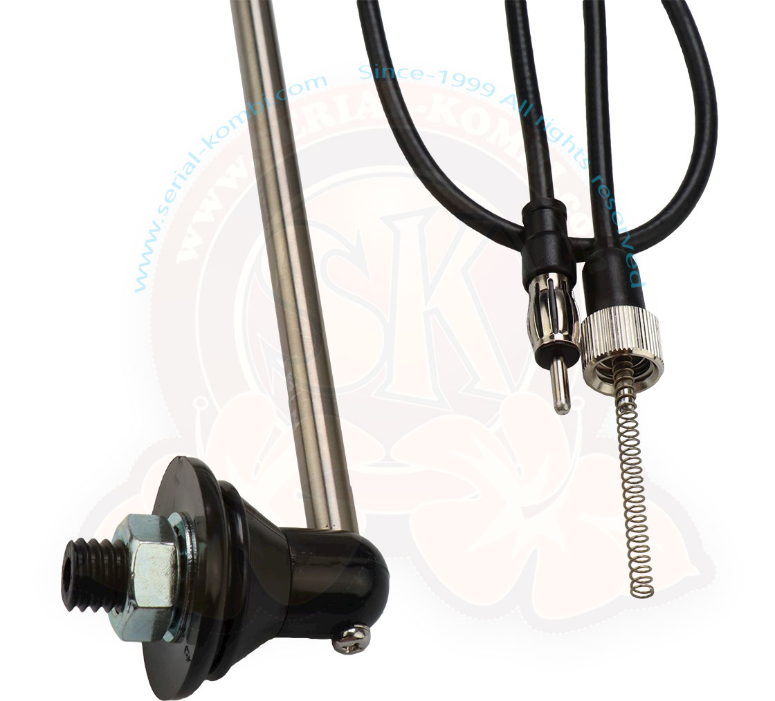Antena de radio, 2 anclajes, cromada con soportes negros, juntas y cable, universal