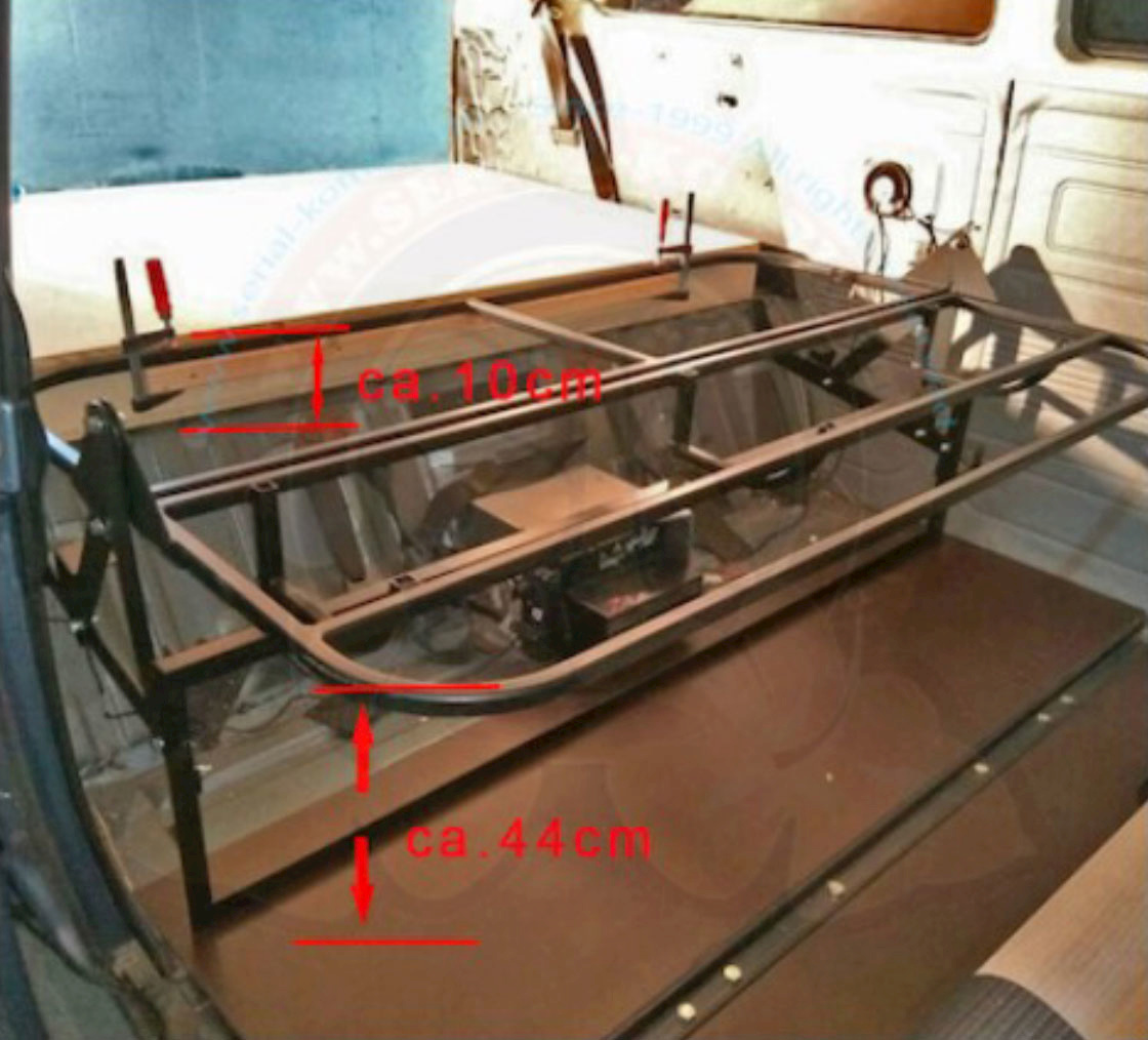 Este sofá cama es diseñado para utilizarse junto con un compartimento de almacenaje situado sobre la tapa de acceso del motor, de una altura de entre 10 y 13 cm, instalado de origen en ciertos modelos.
