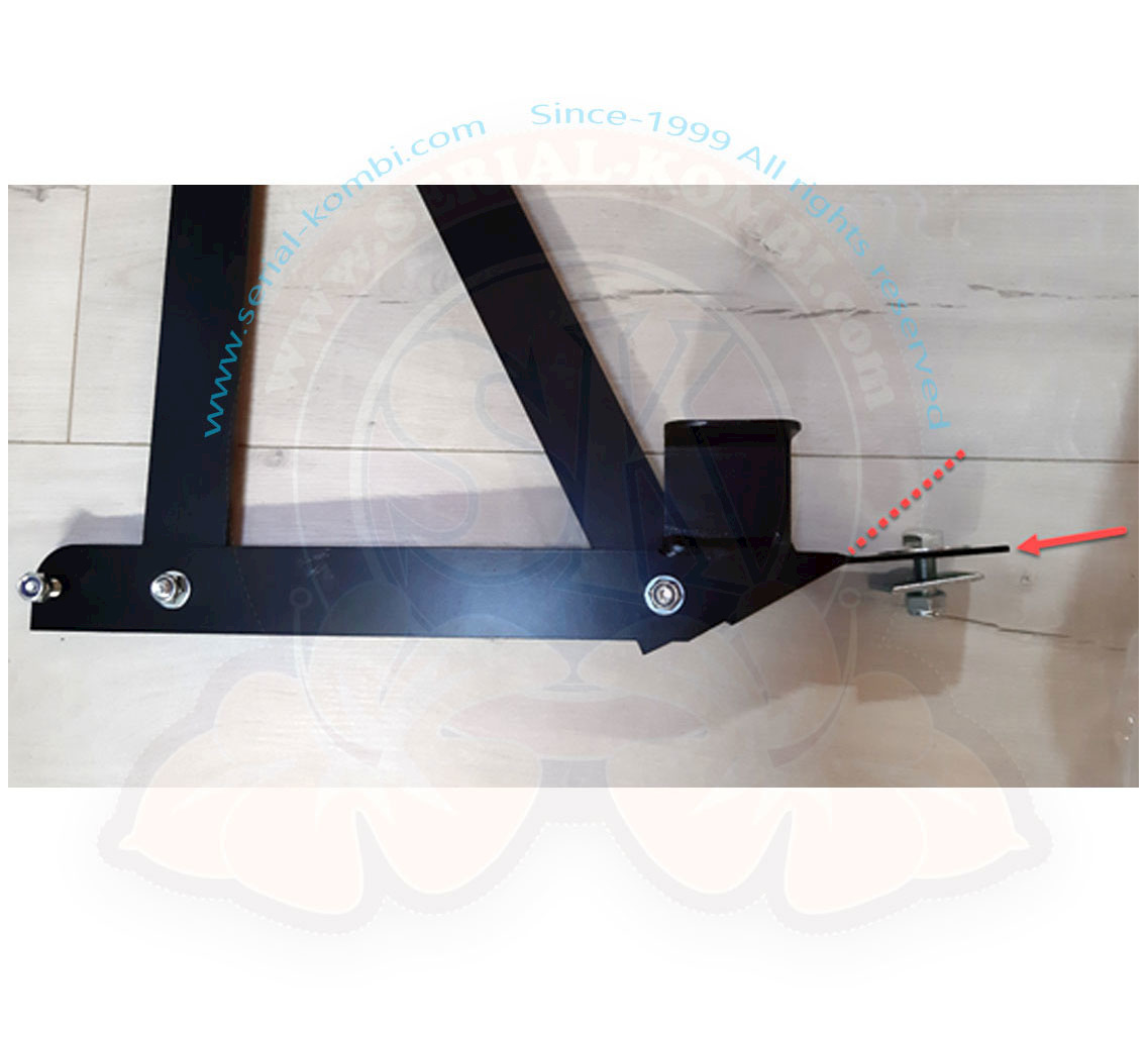 NB: El soporte que se fijará a la carrocería o al paso de rueda está predoblado para adaptarse a la mayoría de los usos, será necesario adaptar el ángulo según el lugar de fijación.
